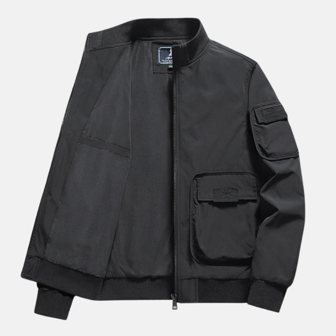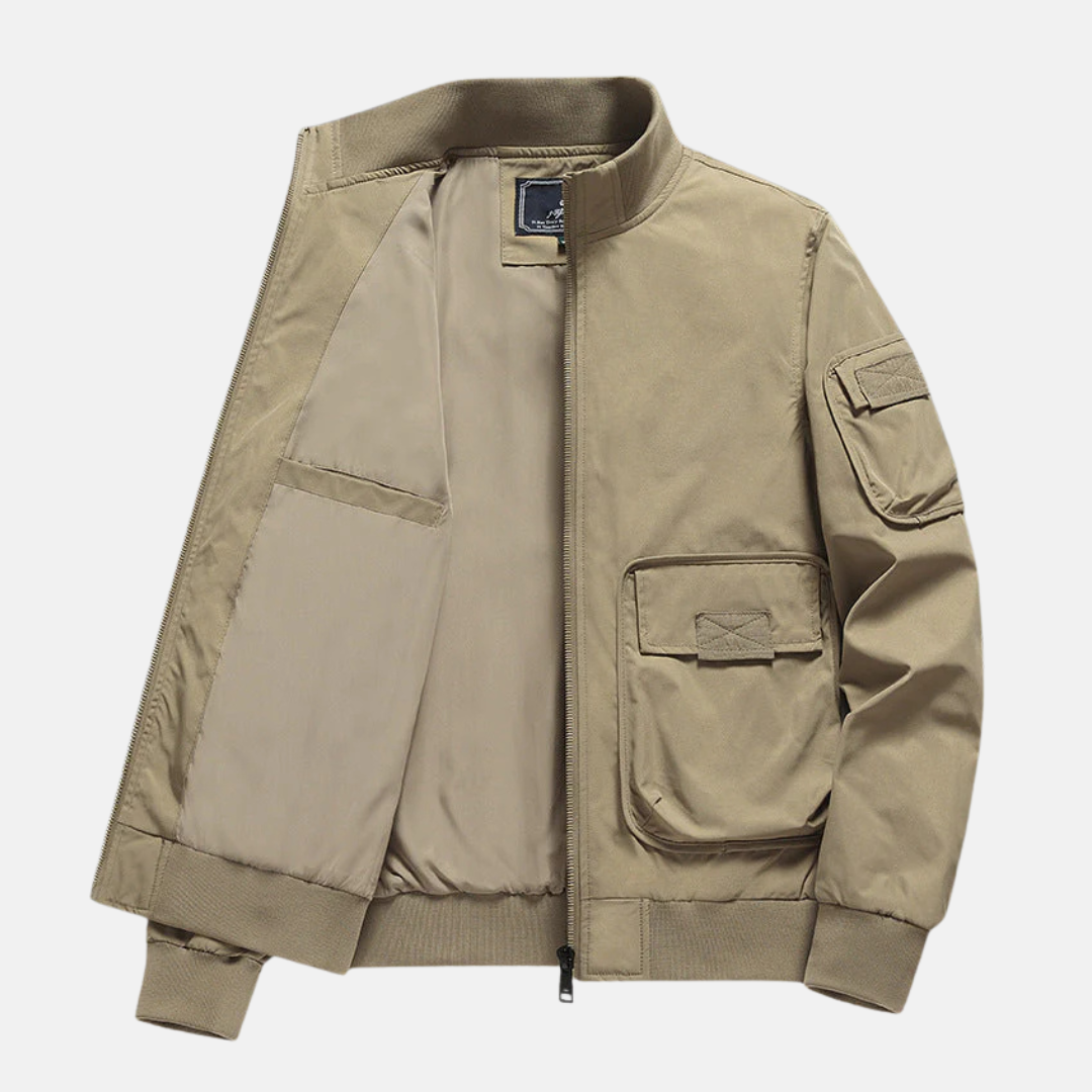 Herr Bomberjacka – Avslappnad Passform – Ribbad Krage och Muddar – Flera Fickor