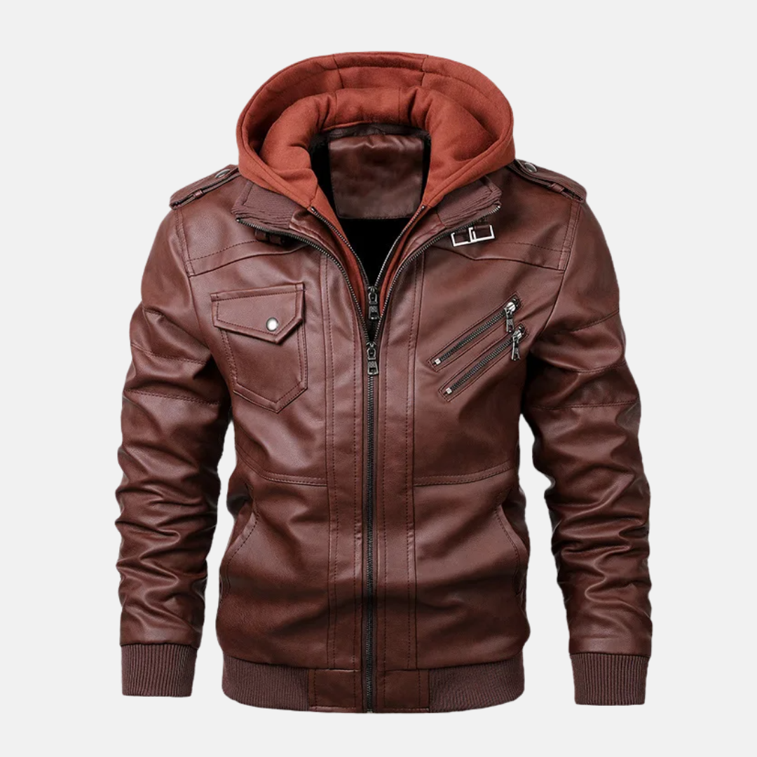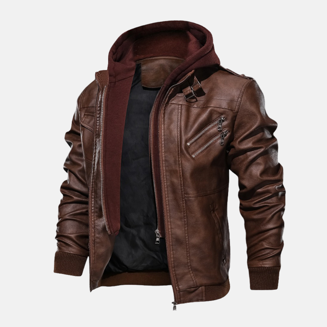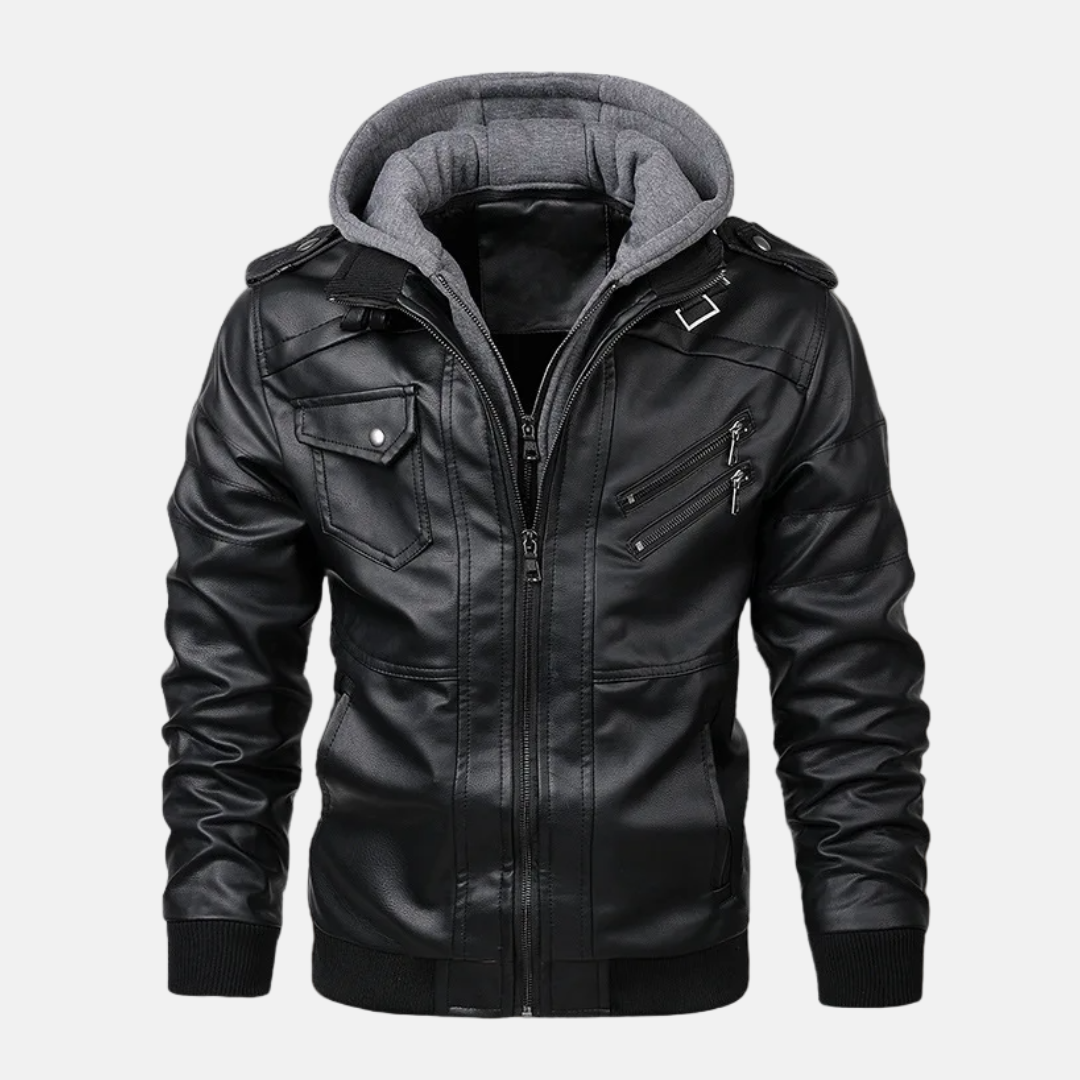 Upplev urban stil med vår Bomberjacka i Fusk-Skinn med Slim Fit. Denna herrbomberjacka kombinerar en trendig slim fit med en huva i lager-på-lager-stil och urbana detaljer i fuskskinn. Perfekt för stadsliv och en modern look.
