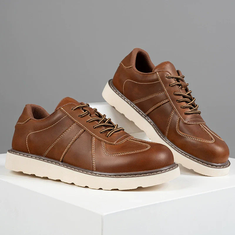 Herr Skor Låg Modell – Läderöverdel – Snörning – Tjock Sula – Arbetsstil Retro
