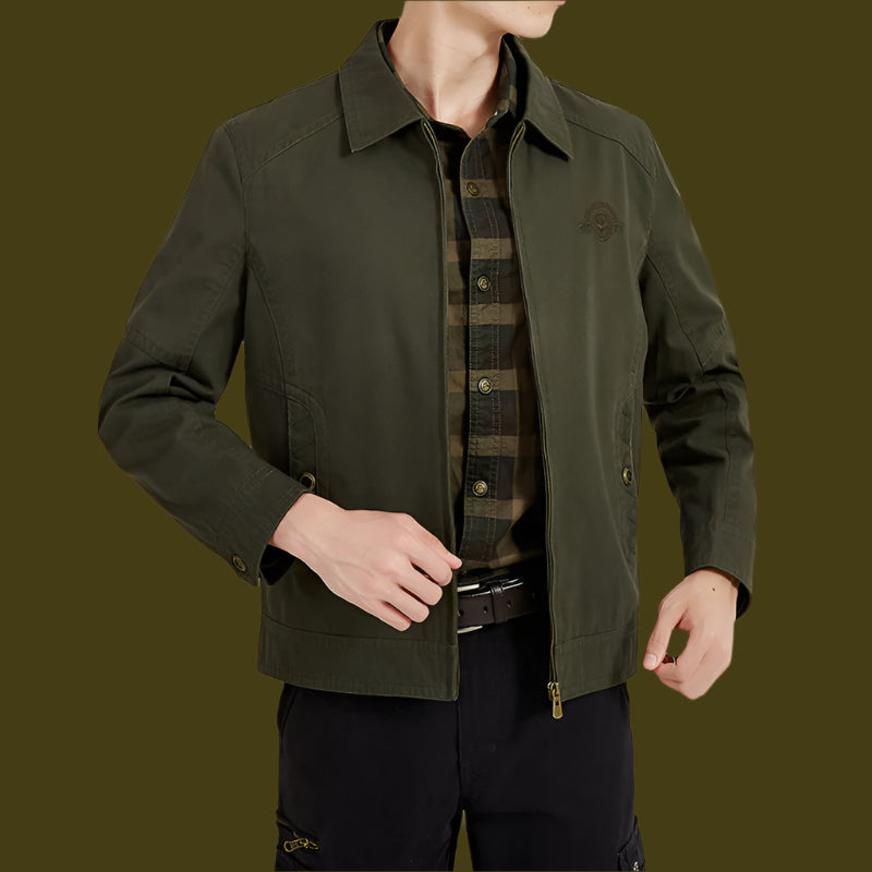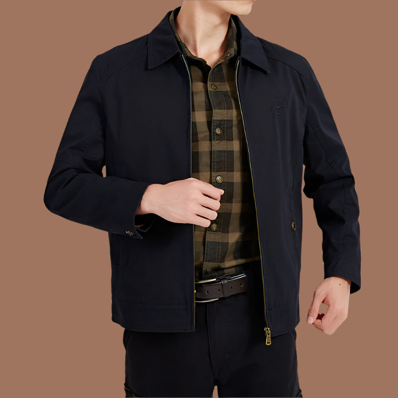 Herrjacka – Avslappnad Passform – Andningsbart Tyg – Dragkedja – Knappade Fickor