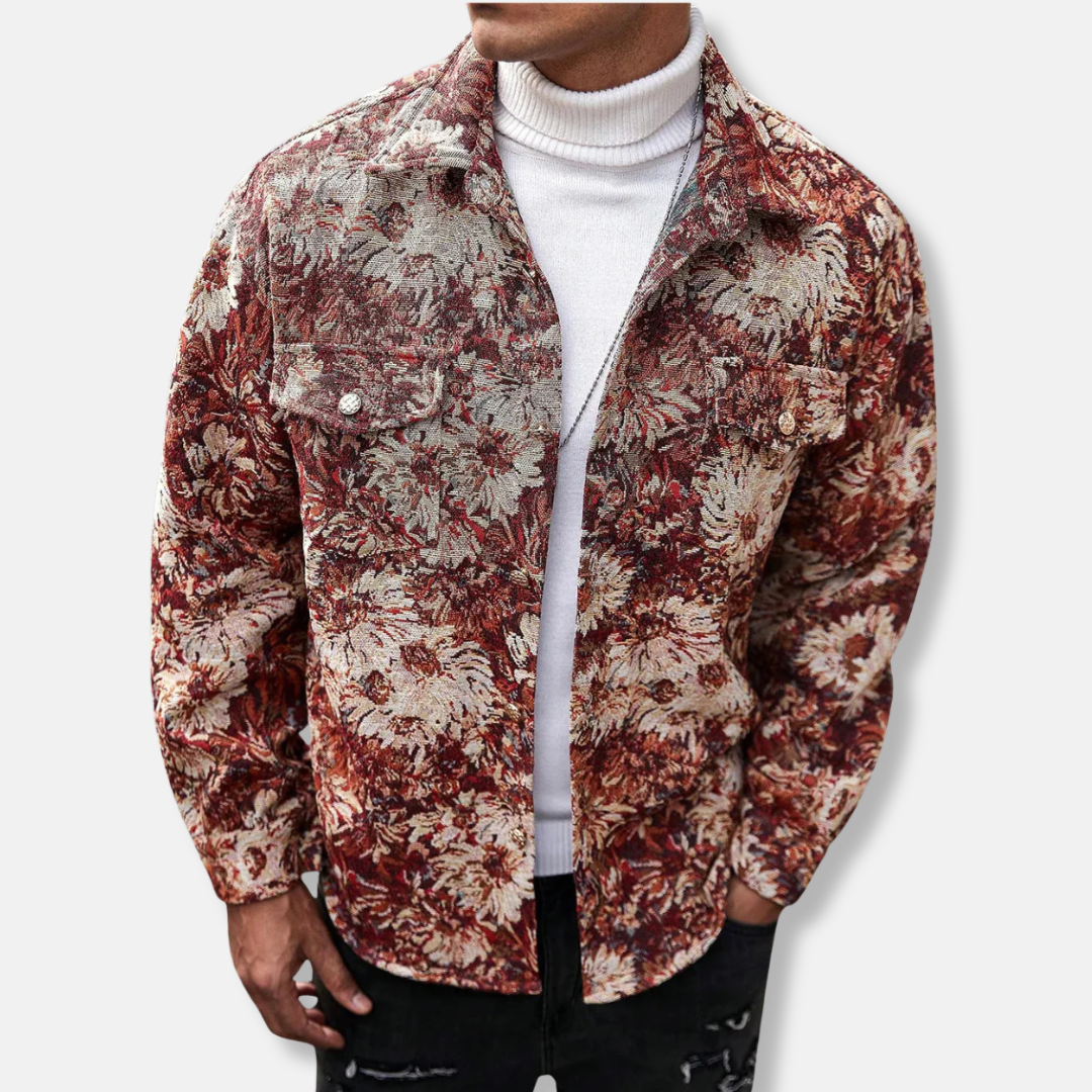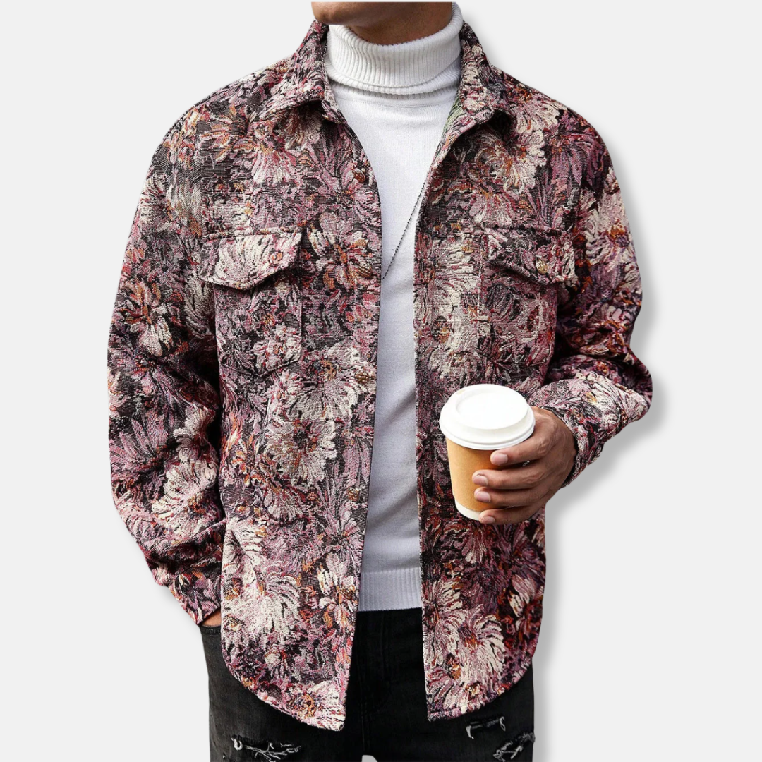 Herrjacka – Avslappnad Passform – Vävt Tyg – Blommigt Jacquardmönster – Lång Ärmlängd