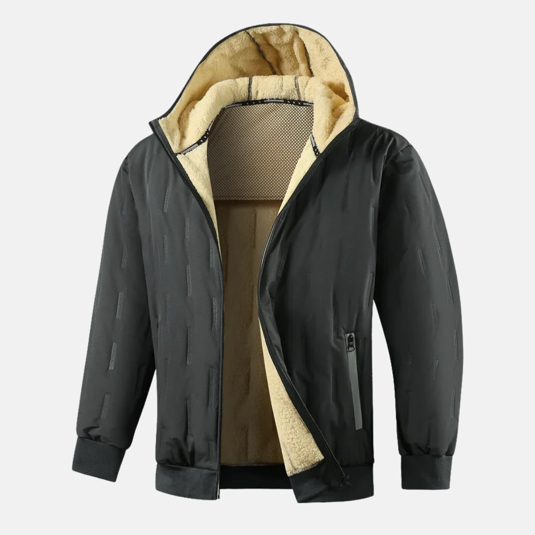 Herrjacka med Huva – Avslappnad Passform – Mjuk Fuskpälsfoder – Dragkedjefickor
