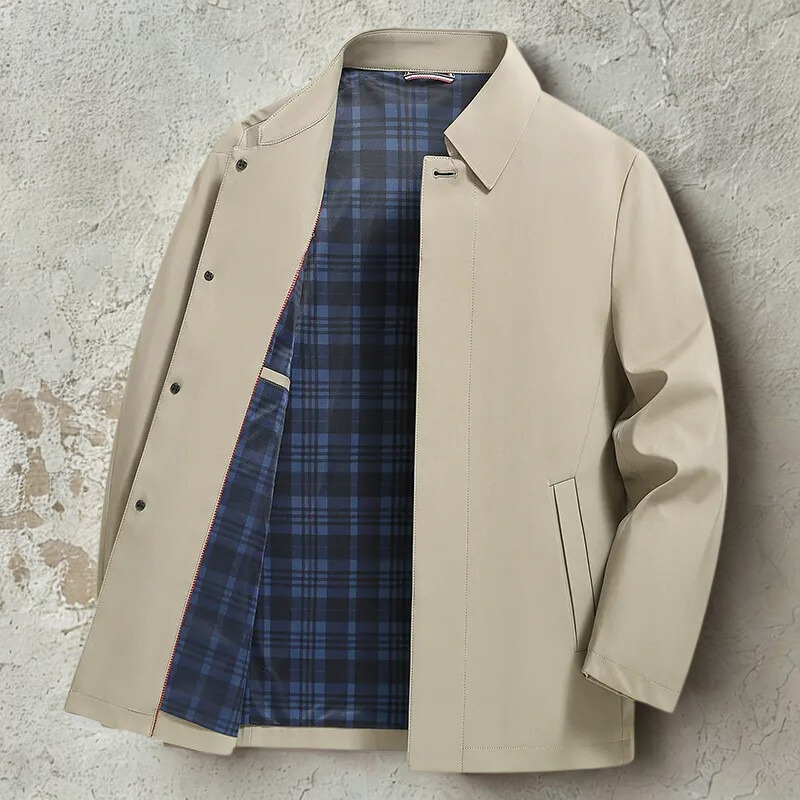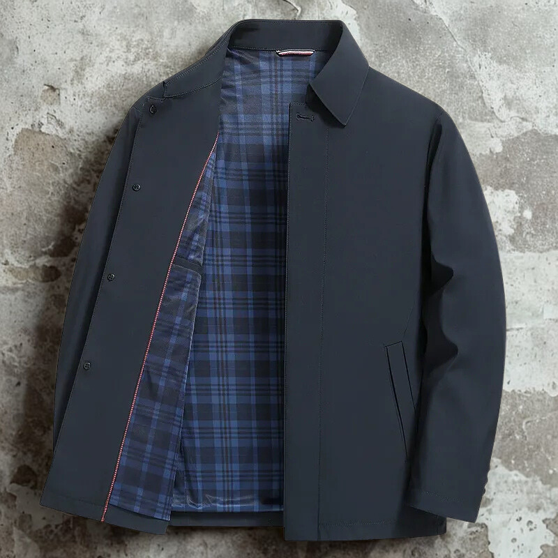 Herrjacka – Mellanlängd – Regular Fit – Knäppning – Pointkrage – Rutigt Foder