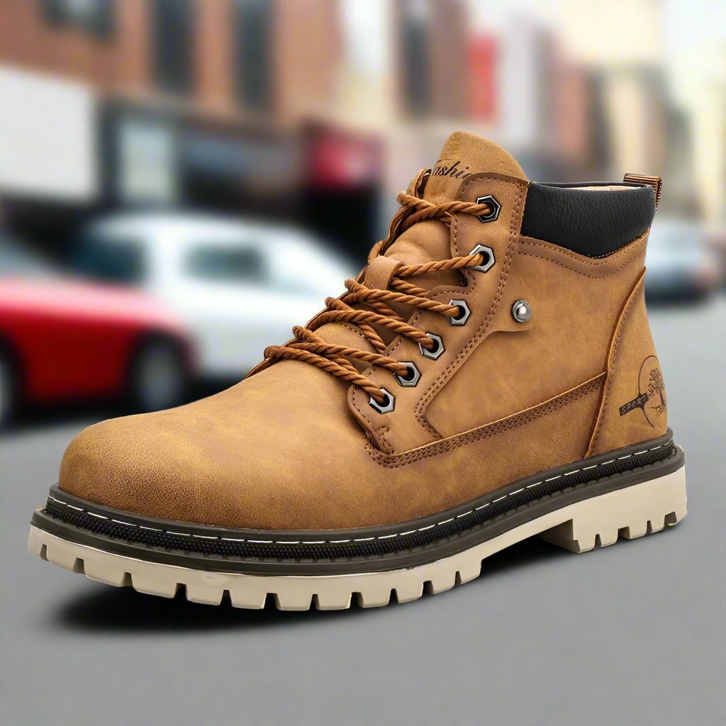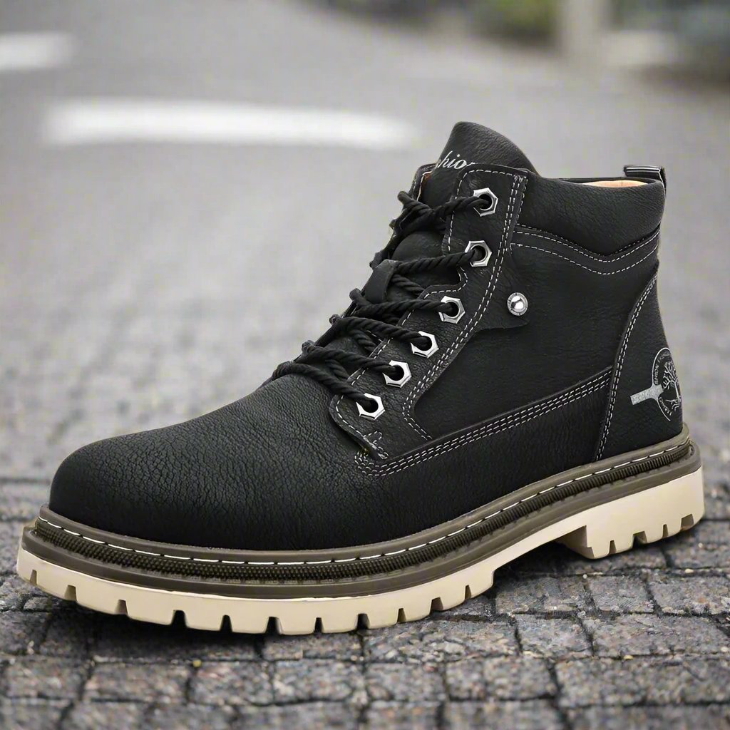 Herrkängor i Läder – Ankelhöga – Snörning med Metallöljetter – Halkfri Sula