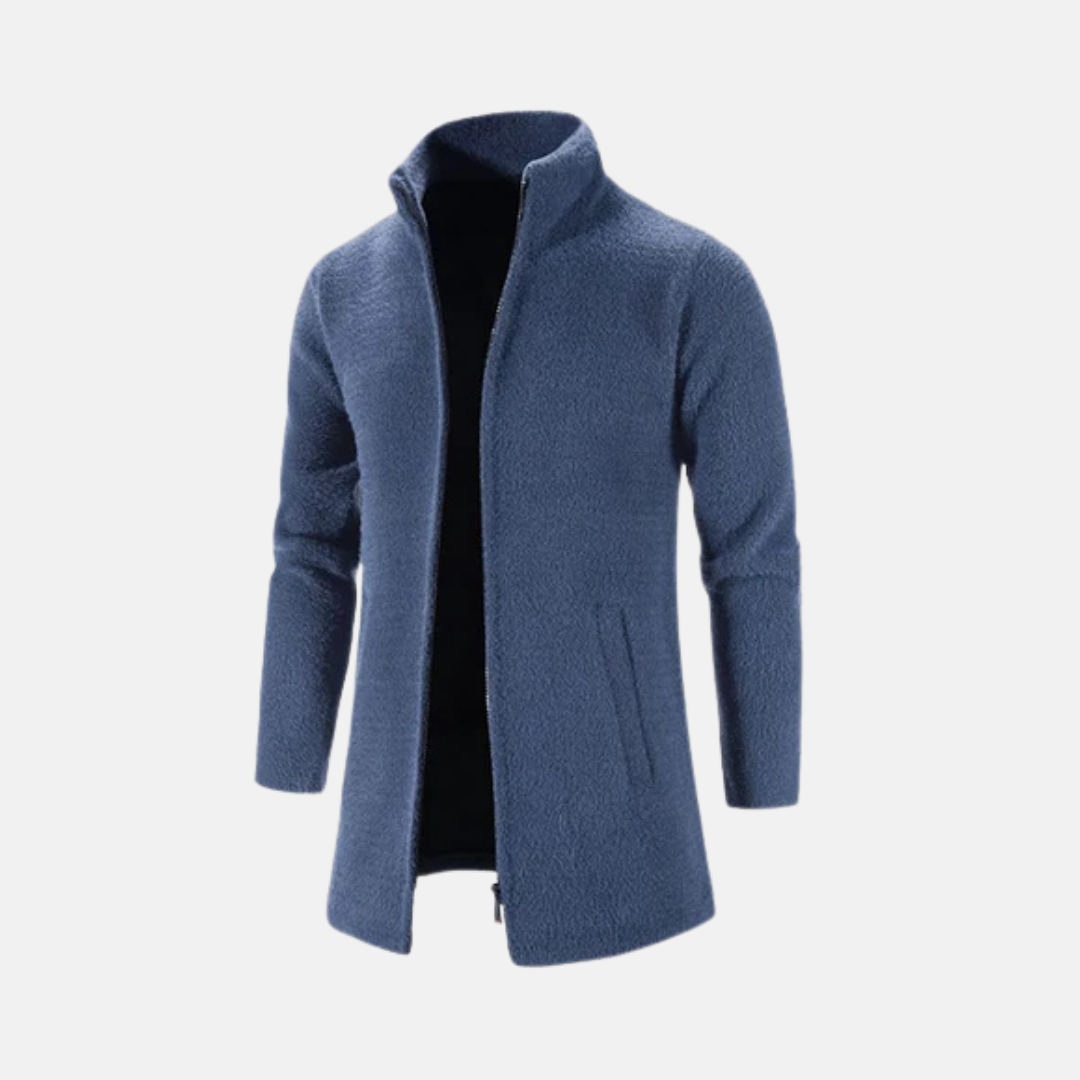 Herrkappa – Avslappnad Passform – Borstad Ullkänsla – Ståkrage – Lång Modell