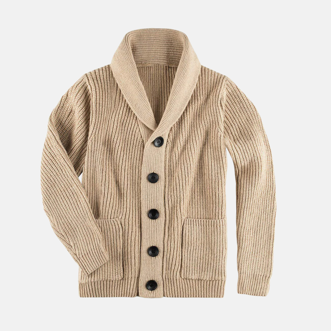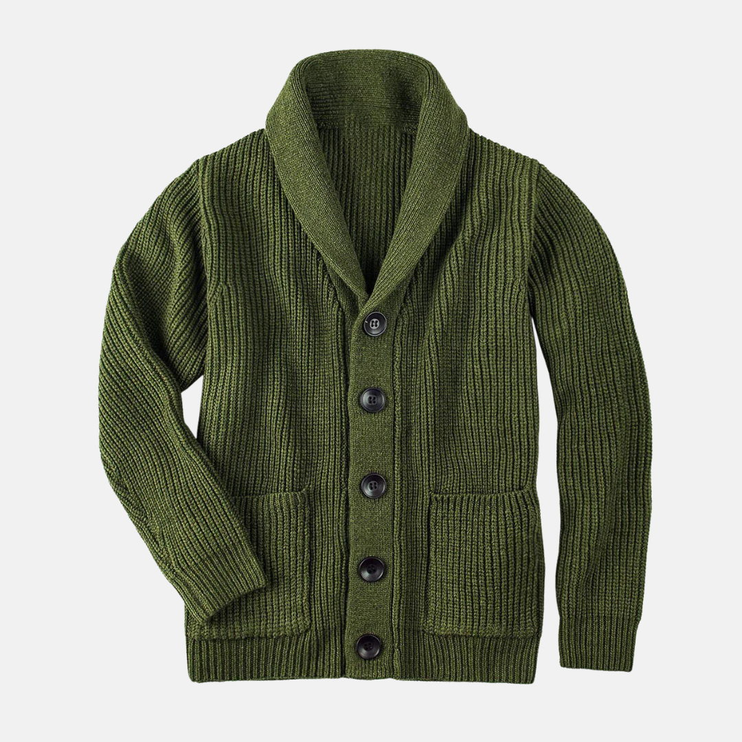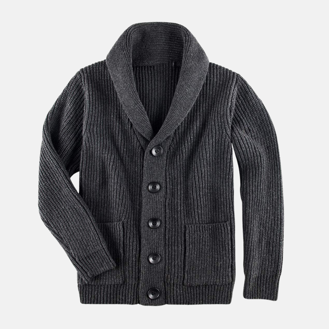 Herrkofta – Ullstickad – Regular Fit – Sjalkrage – Enkelknäppt – Fickor