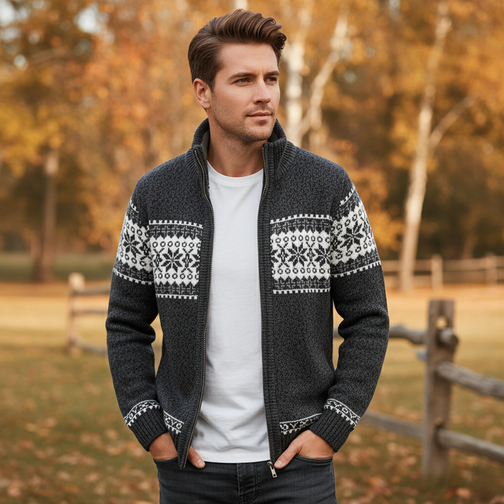 Herrtröja - Långärmad - Hög krage - Nordiskt mönster - Snygg look