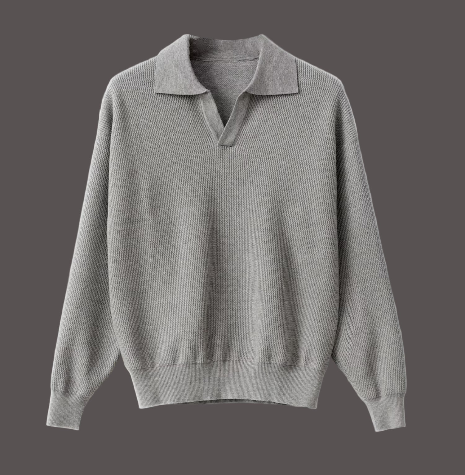 Herrtröja piké – Stickad – Avslappnad oversize passform – Ribbade muddar och fåll