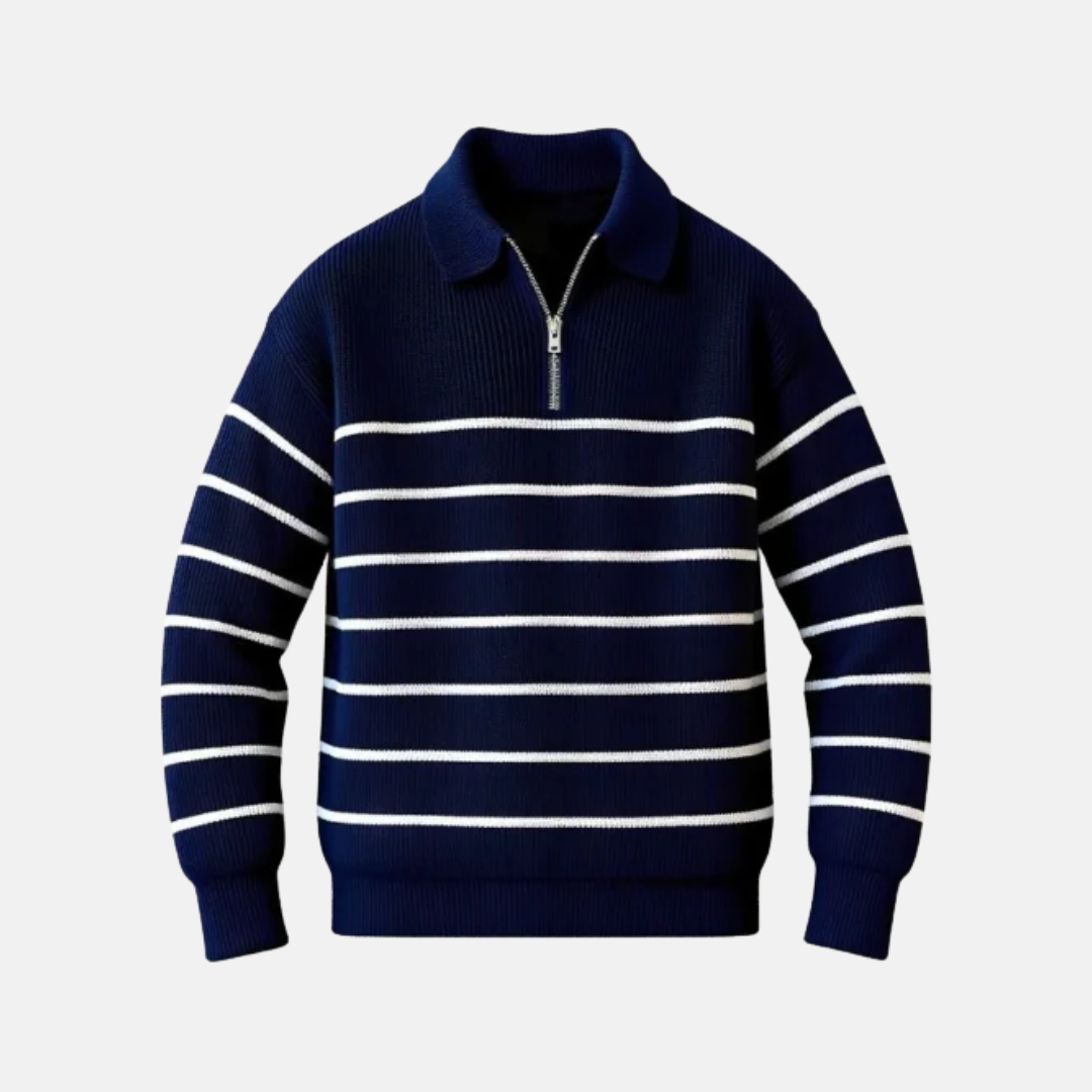 Herrtröja – Ullstickad – Regular Fit – Halvdragkedja – Nautiska Ränder