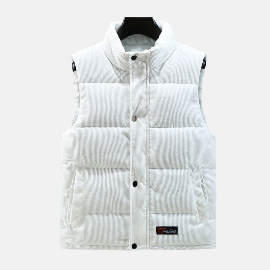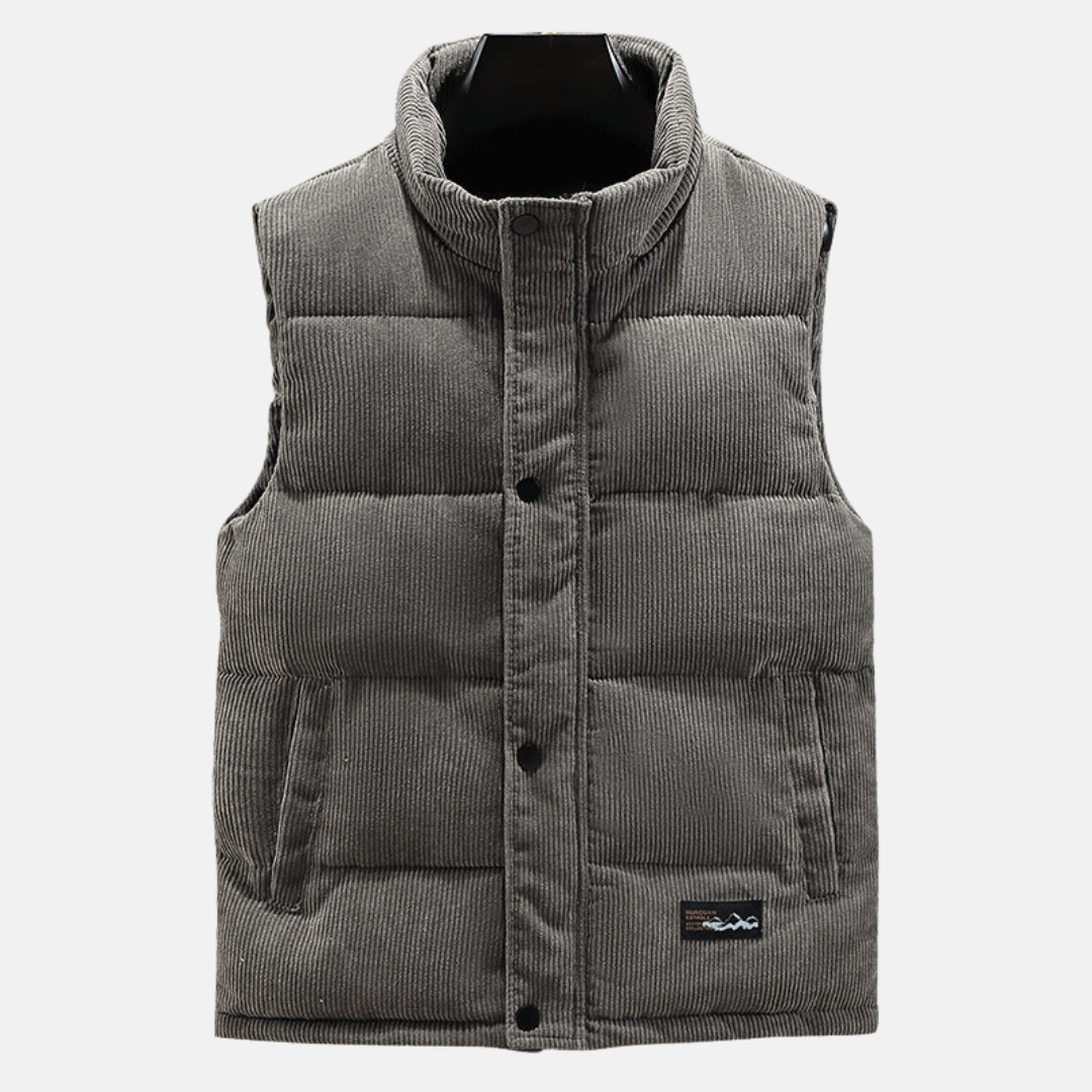 Herrväst – Quiltad Corduroy – Ståkrage – Knappstängning – Vadderad och Praktisk
