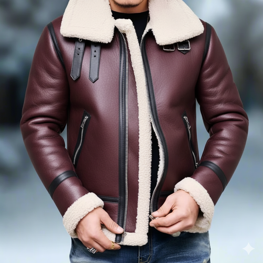 Denna höftlånga bomberjacka för män, tillverkad i läder, erbjuder en normal passform och en klassisk krage. Den långärmade designen är enfärgad och pryds av shearlingdetaljer, dragkedja, fickor med dragkedja samt axelremmar, perfekt för en avslappnad stil.