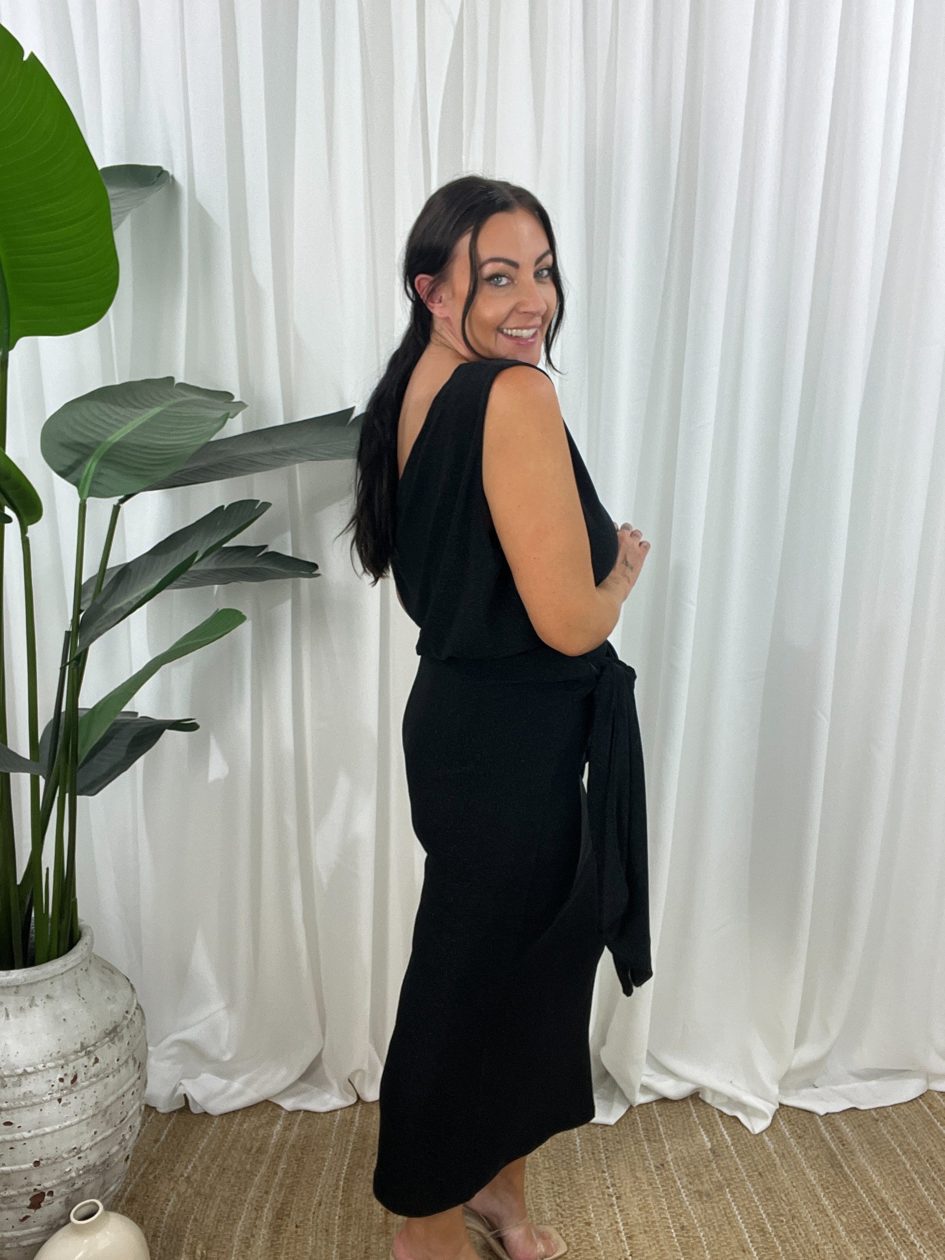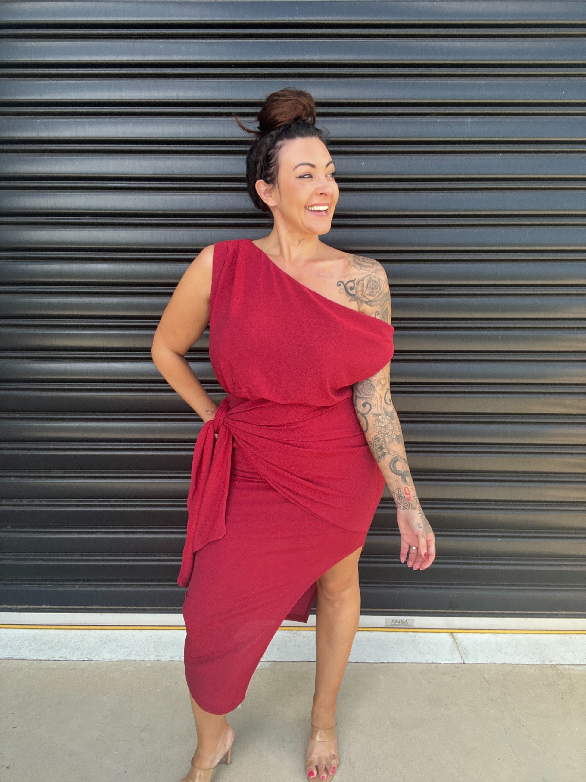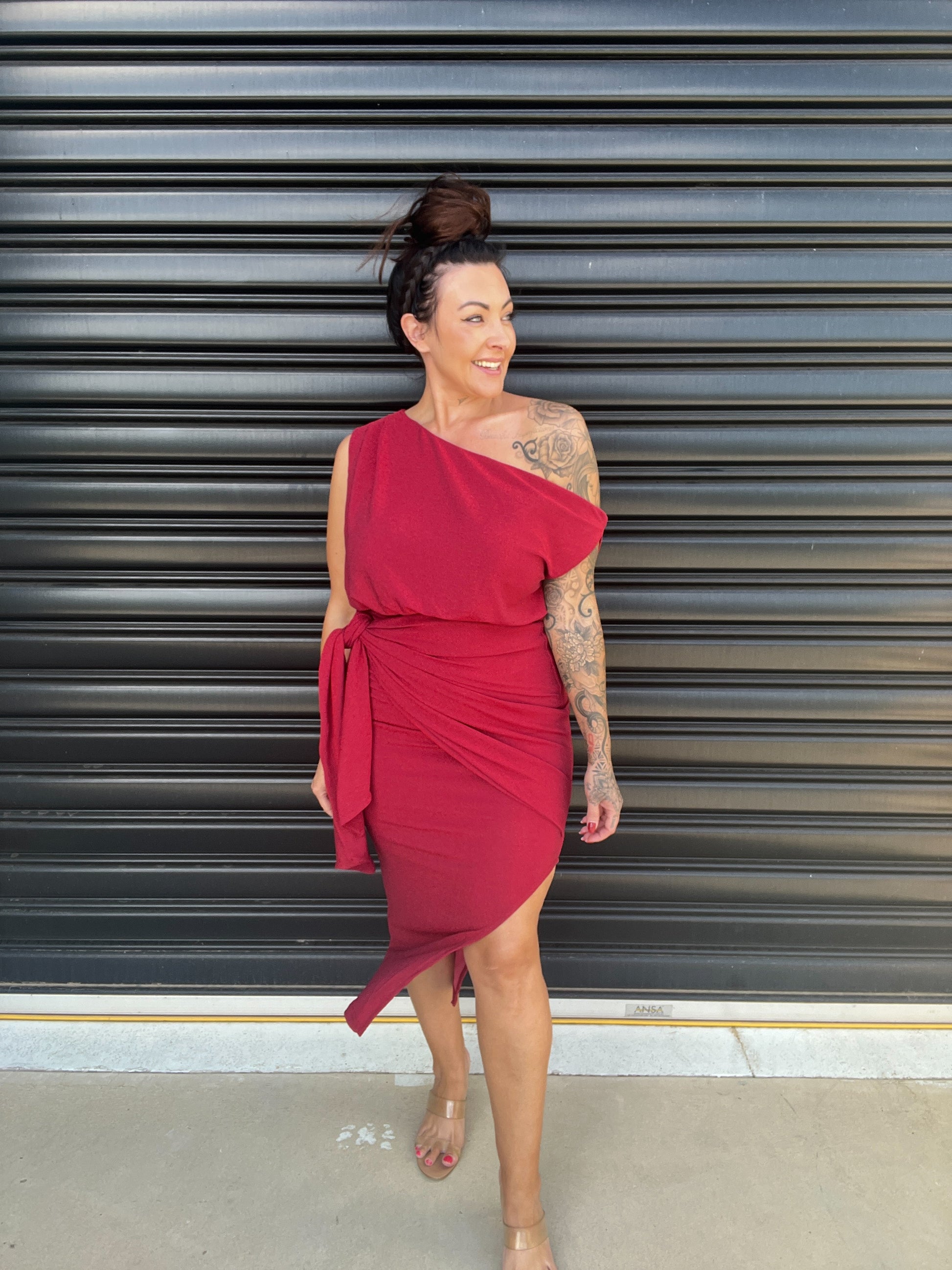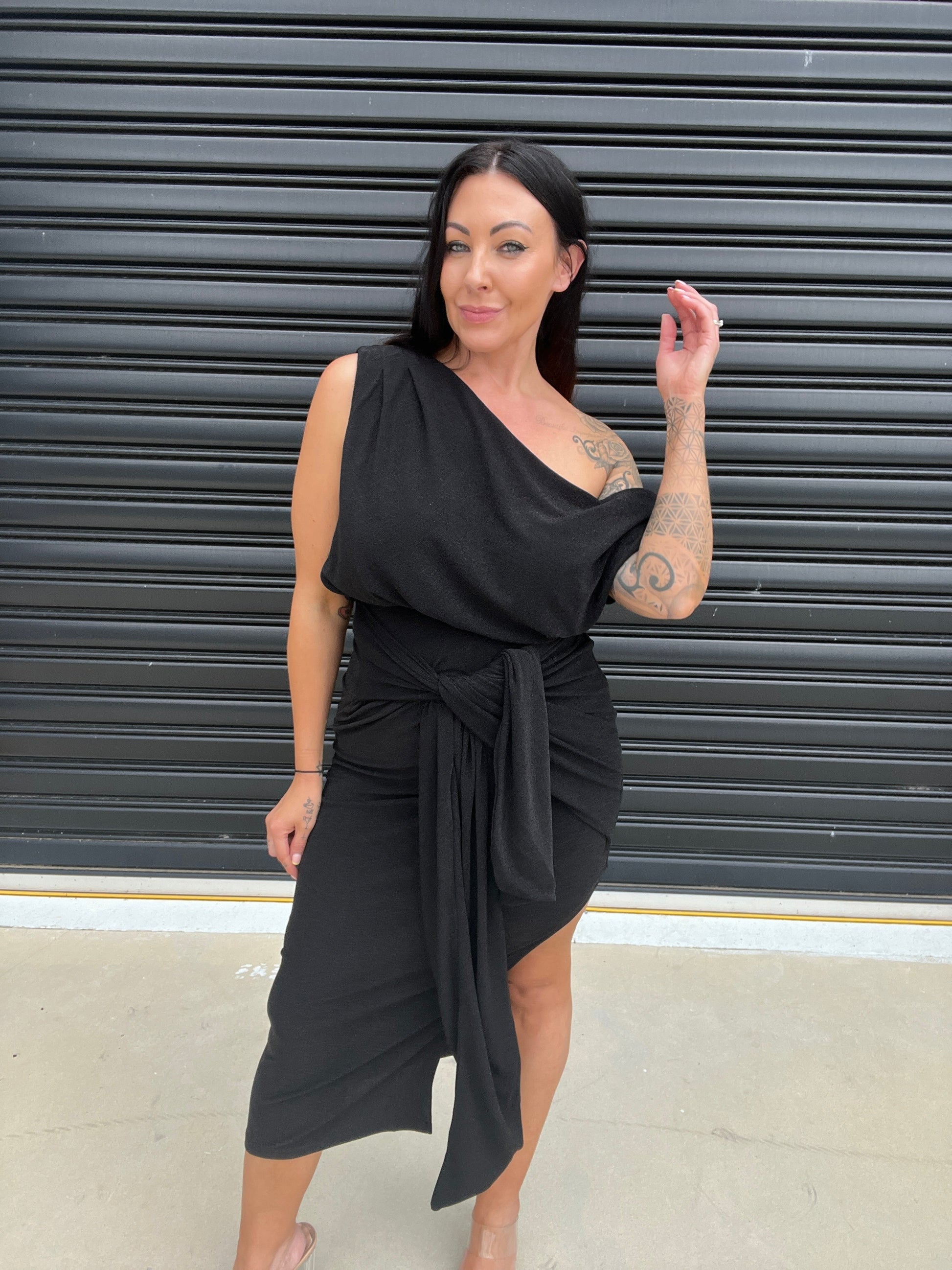 Klänning för dam – Enaxlad – Figurnära passform – Asymmetrisk fåll – Knutdetalj i midjan
