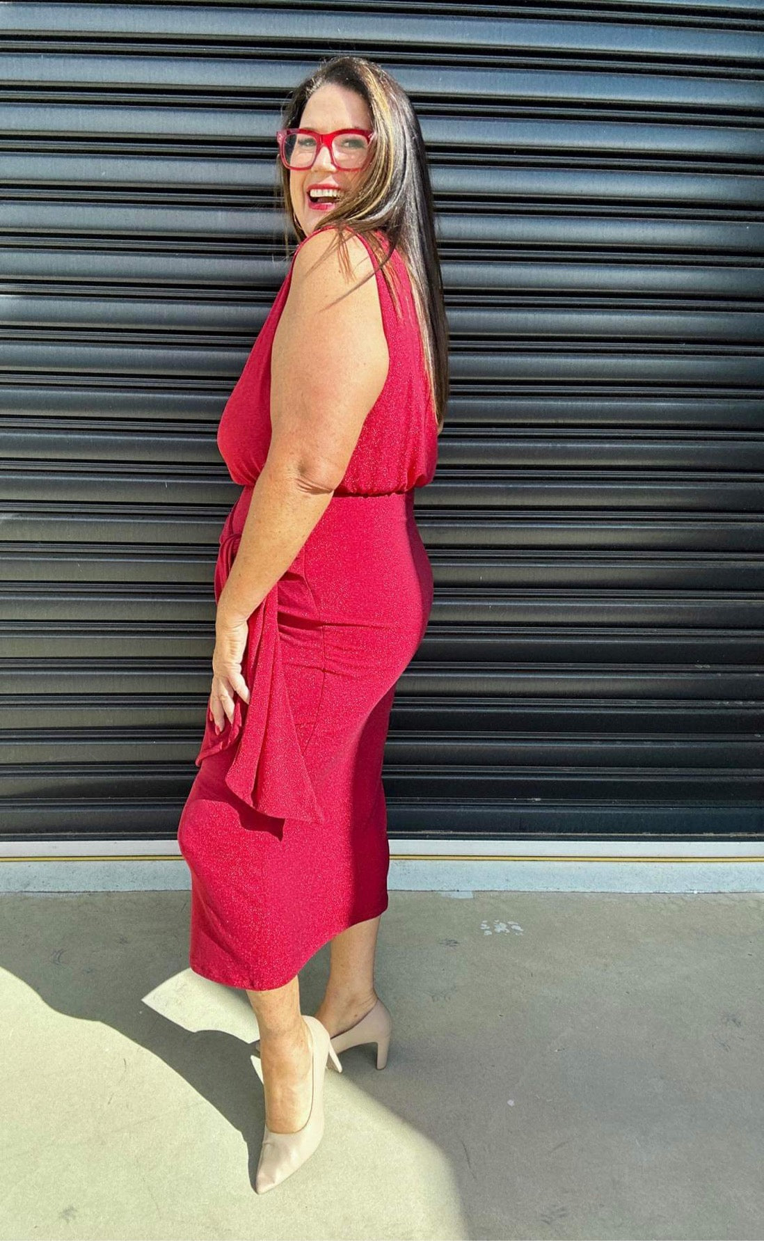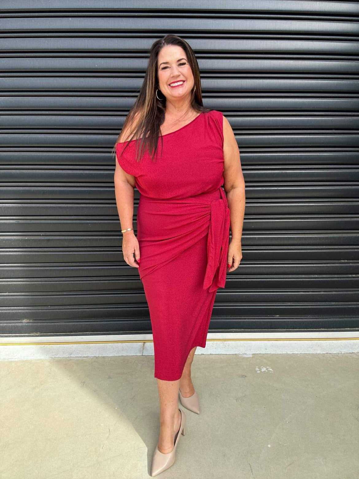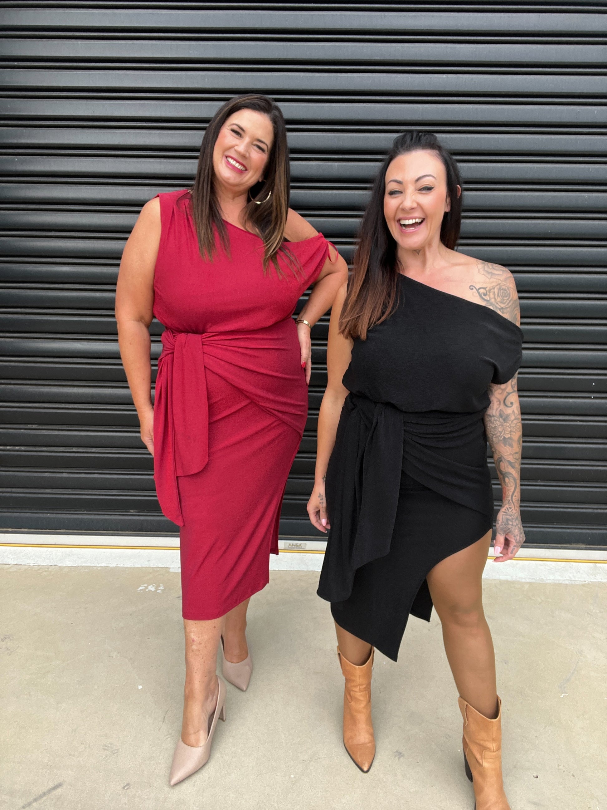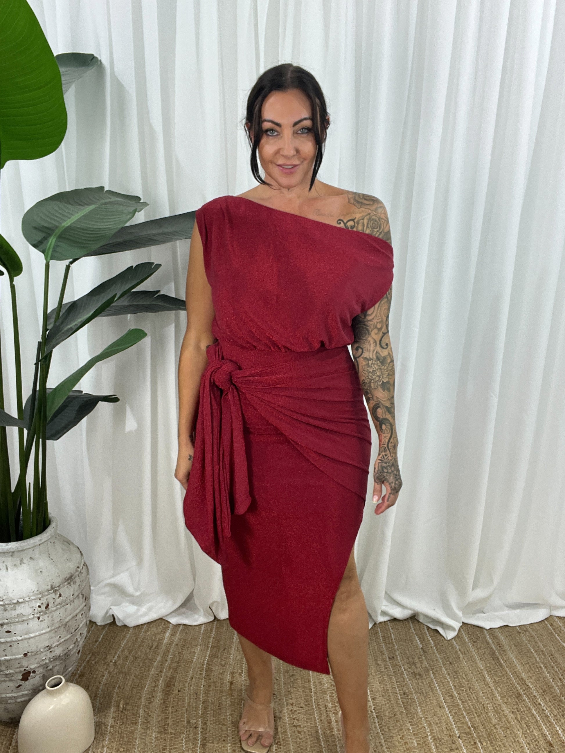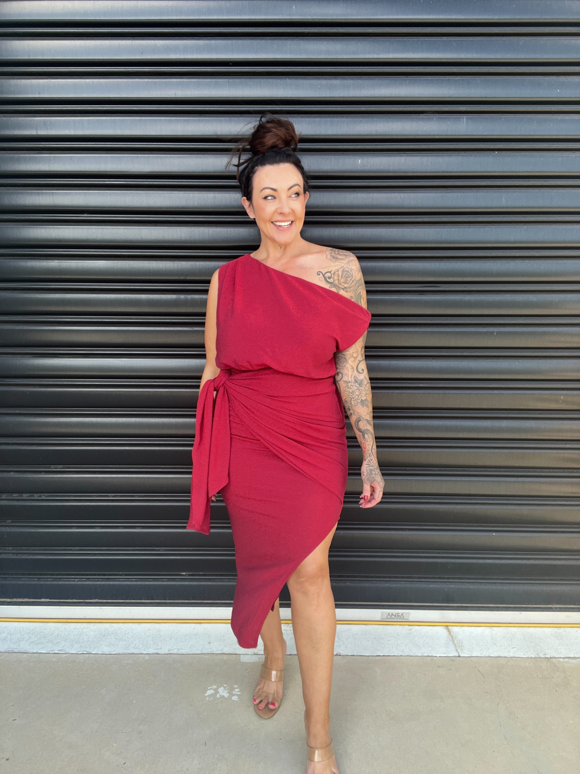 Klänning för dam – Enaxlad – Figurnära passform – Asymmetrisk fåll – Knutdetalj i midjan