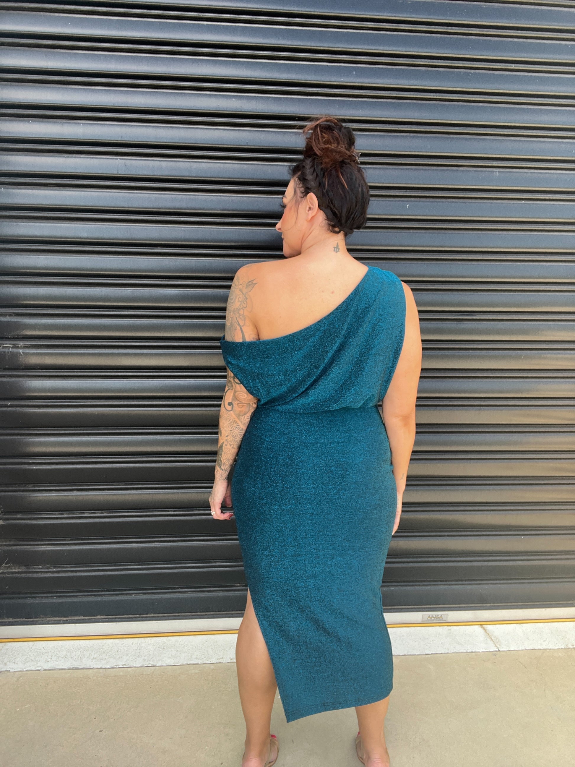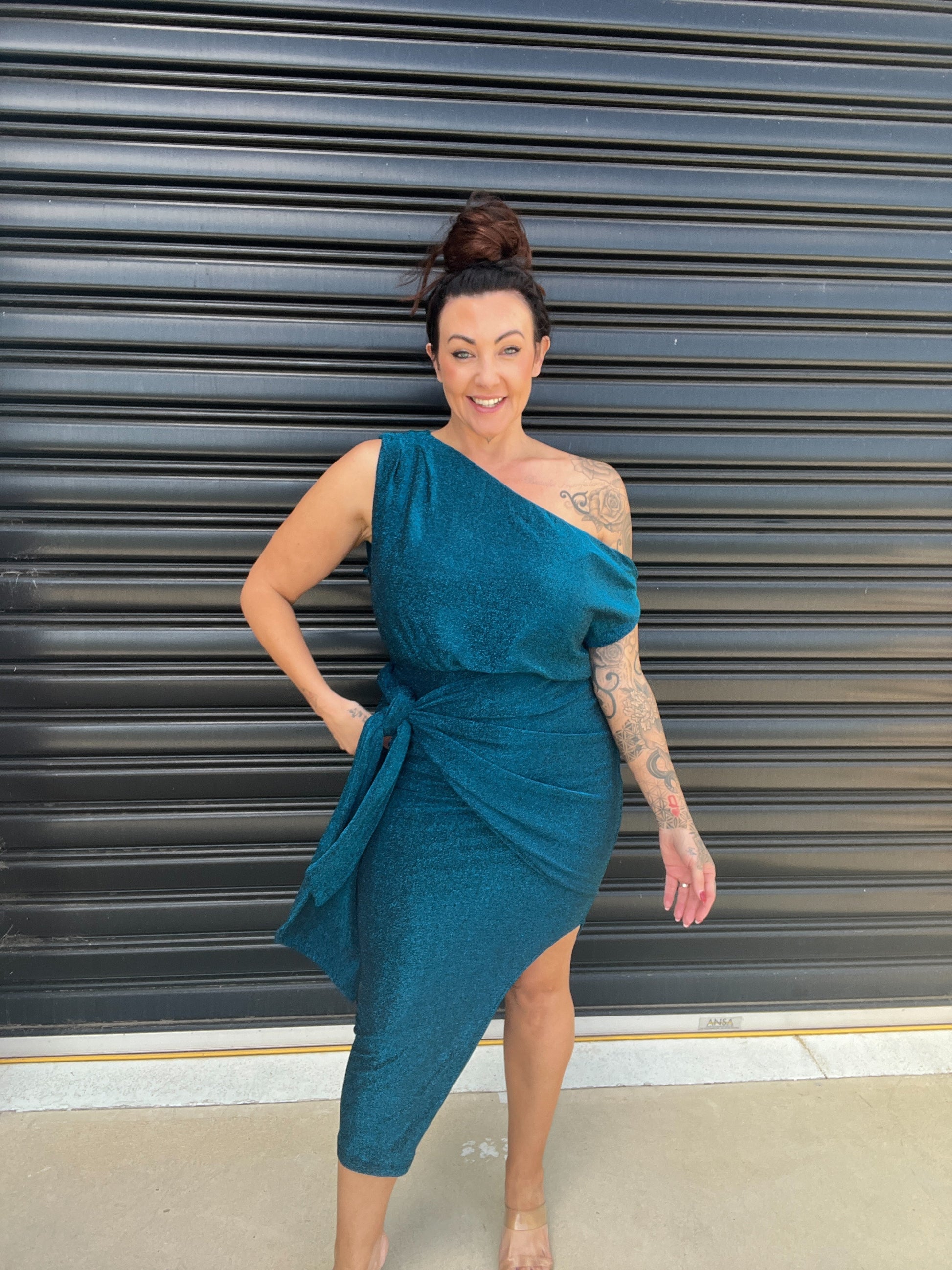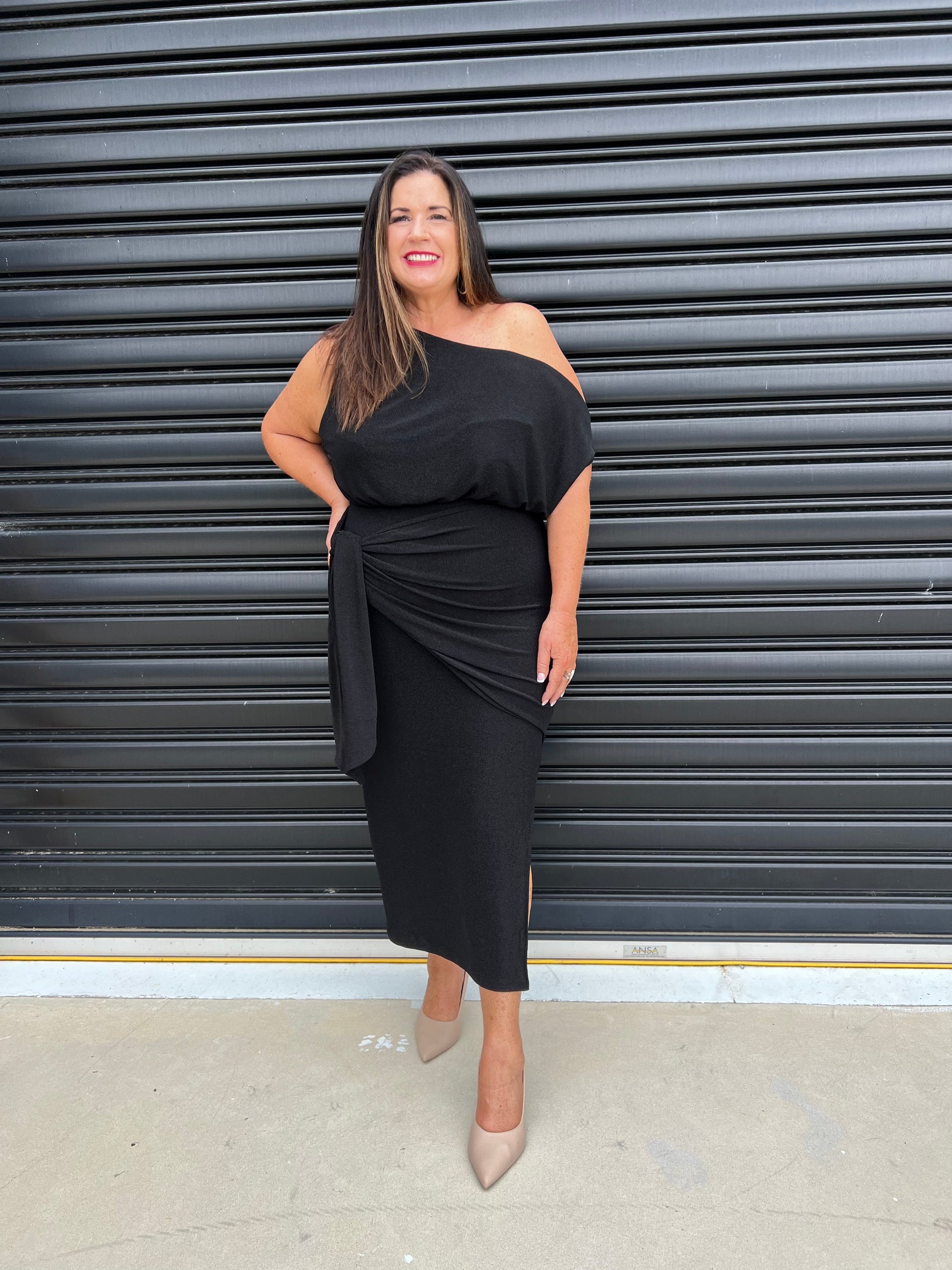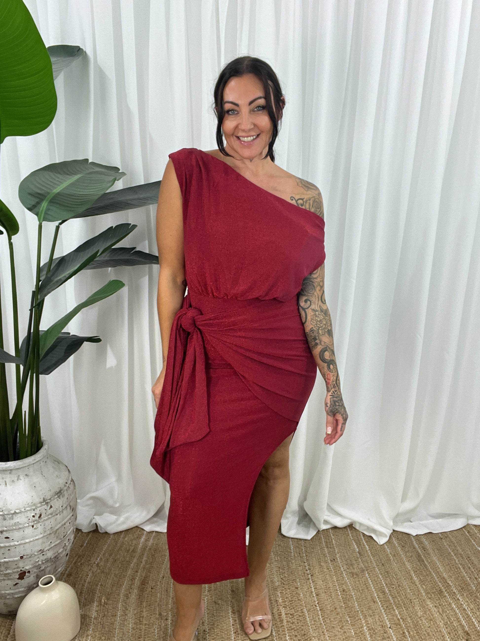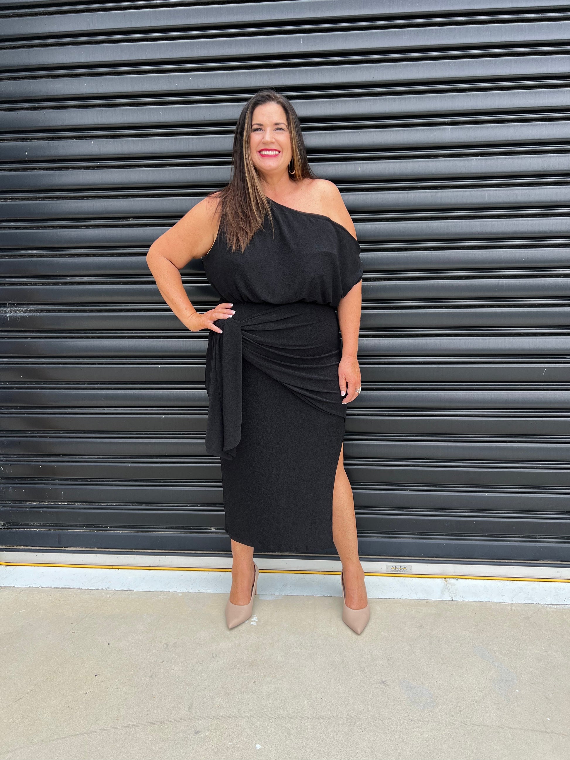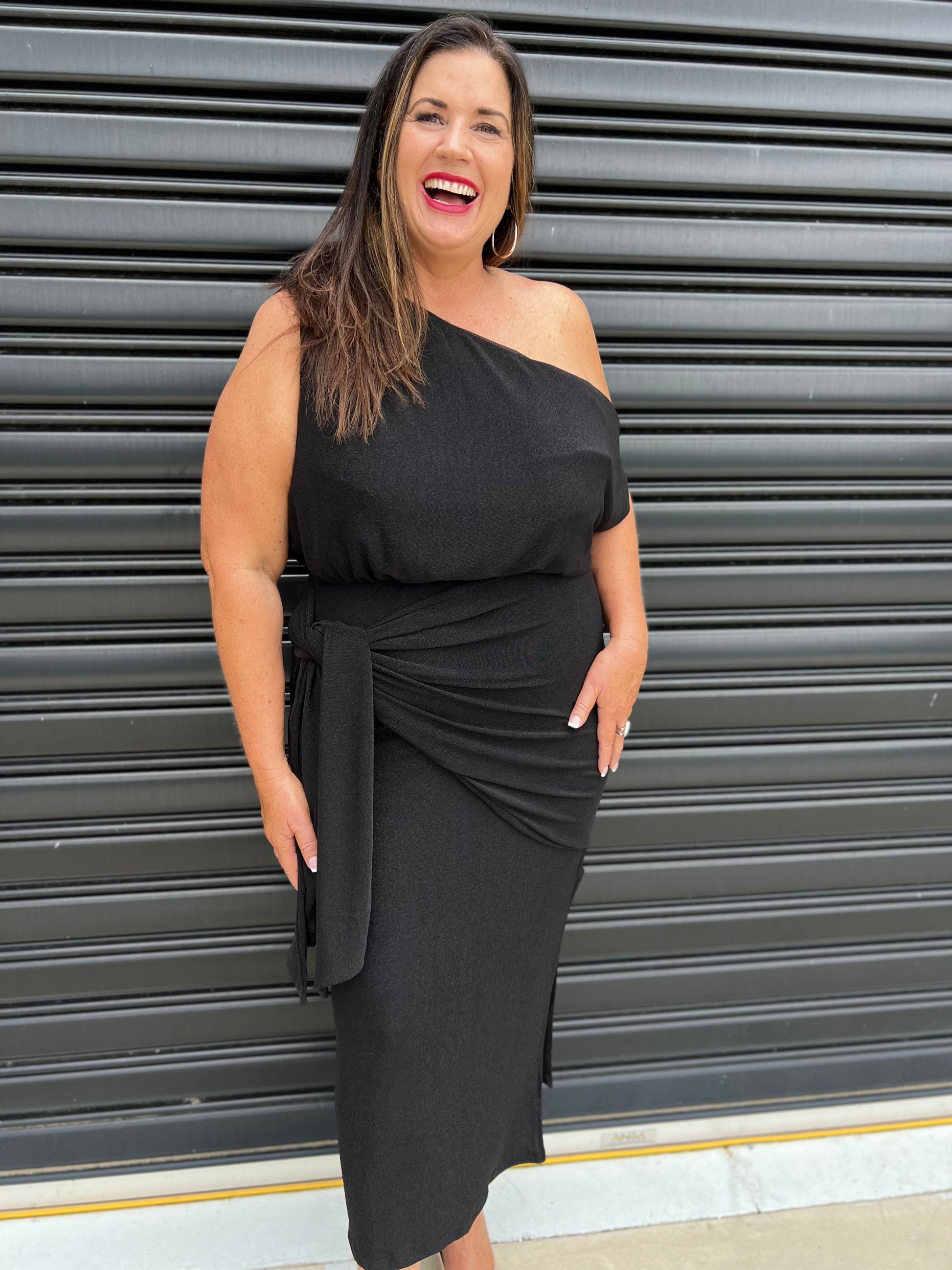 Klänning dam Enaxlad Figurnära Asymmetrisk med knut. Denna eleganta enaxlade klänning från Eva Jansson har en smickrande figurnära passform och en unik asymmetrisk fåll med en vacker knutdetalj i midjan. Perfekt för en sofistikerad look.