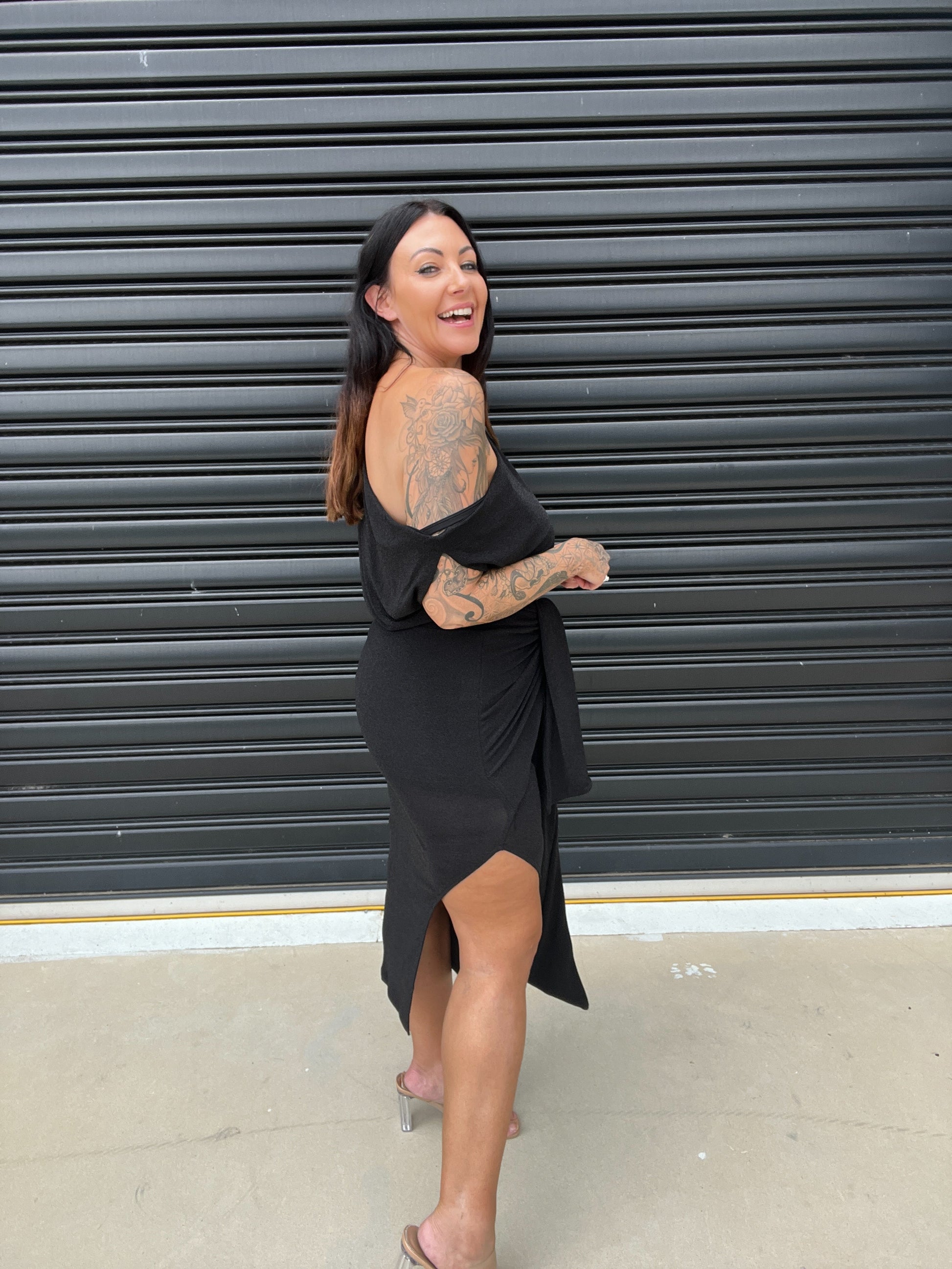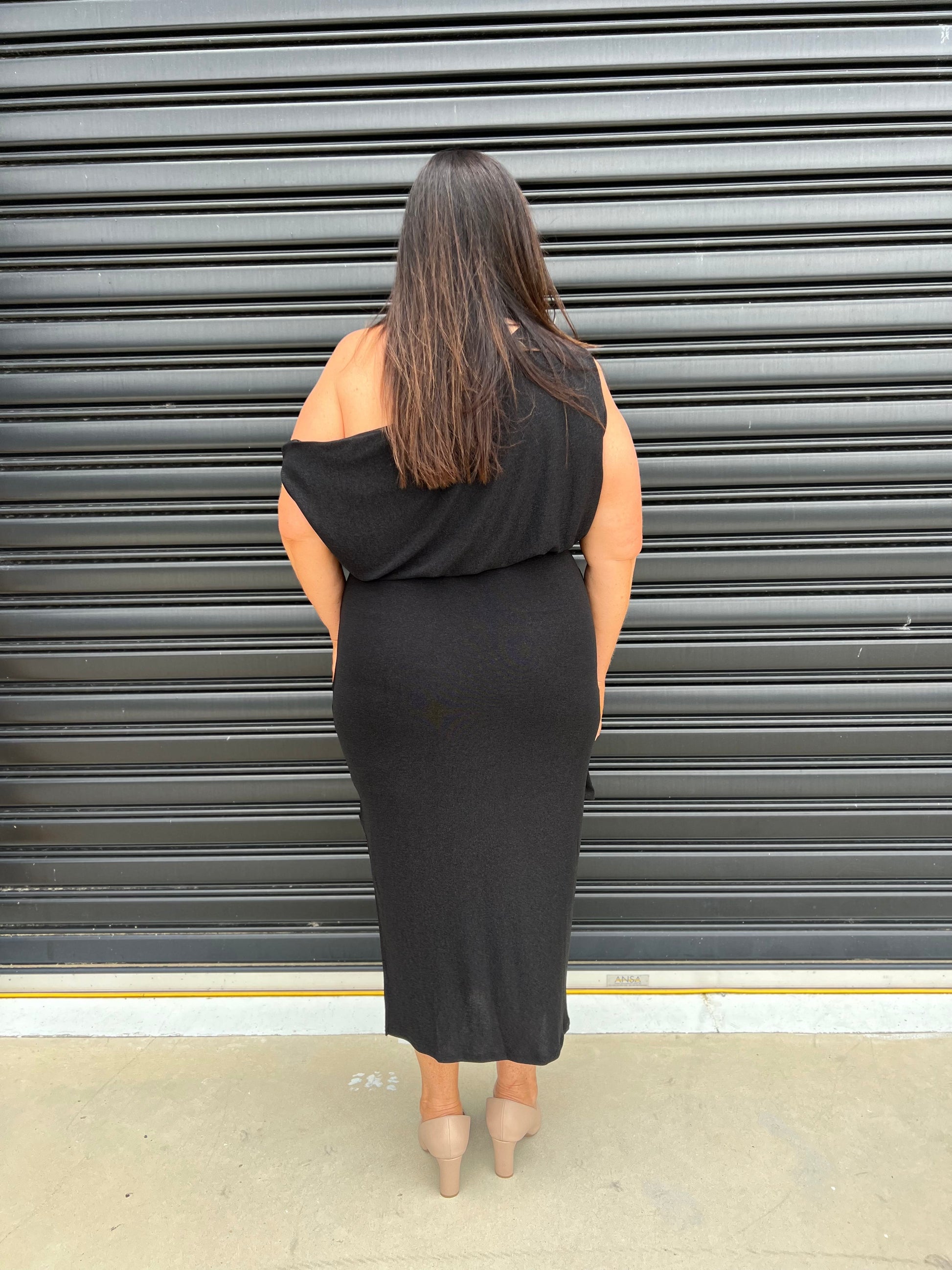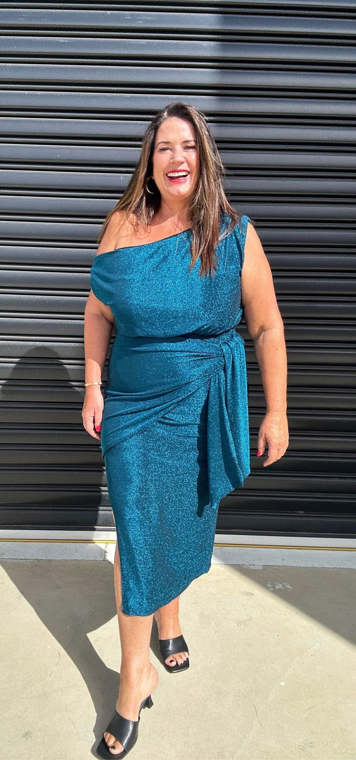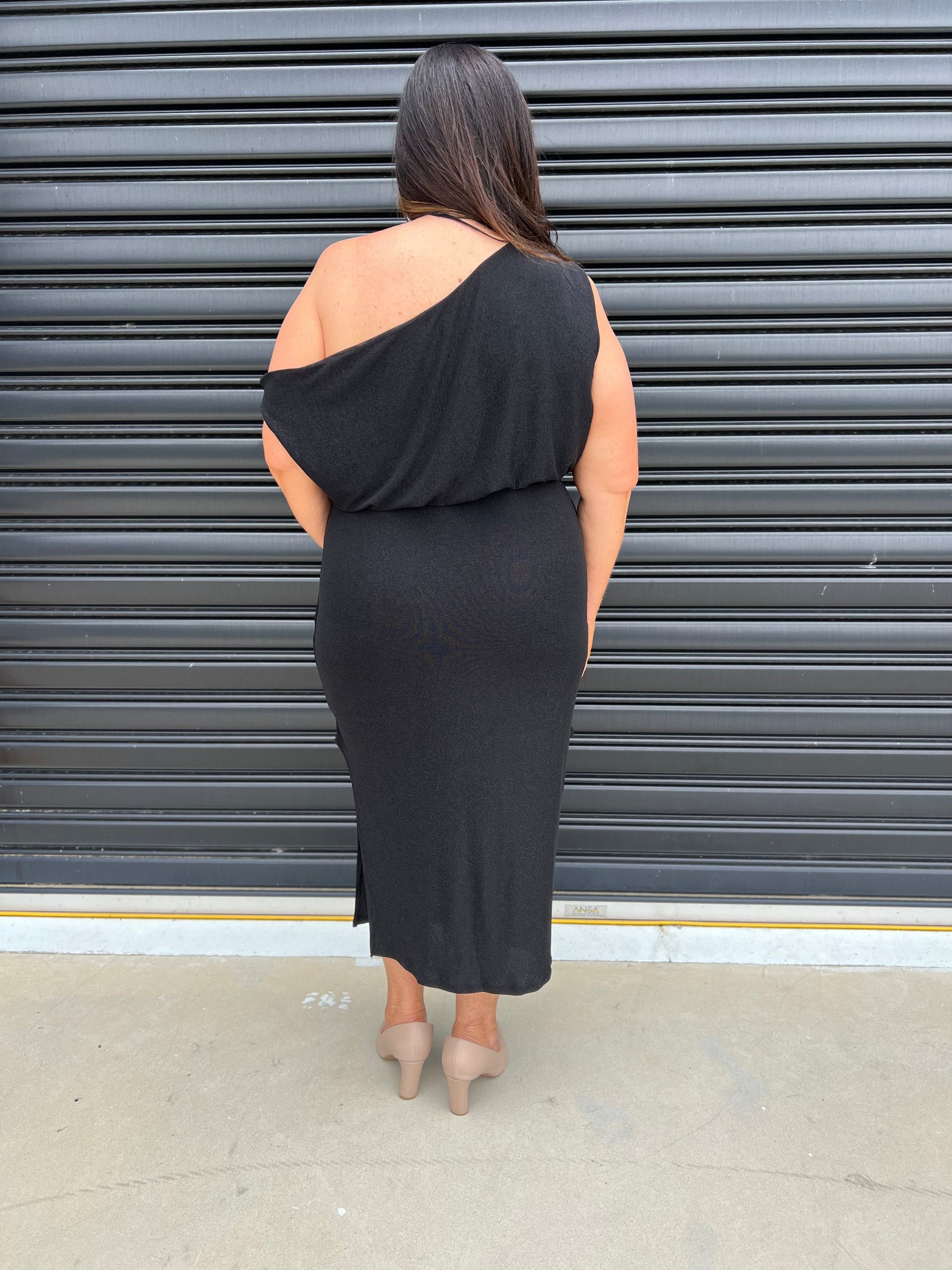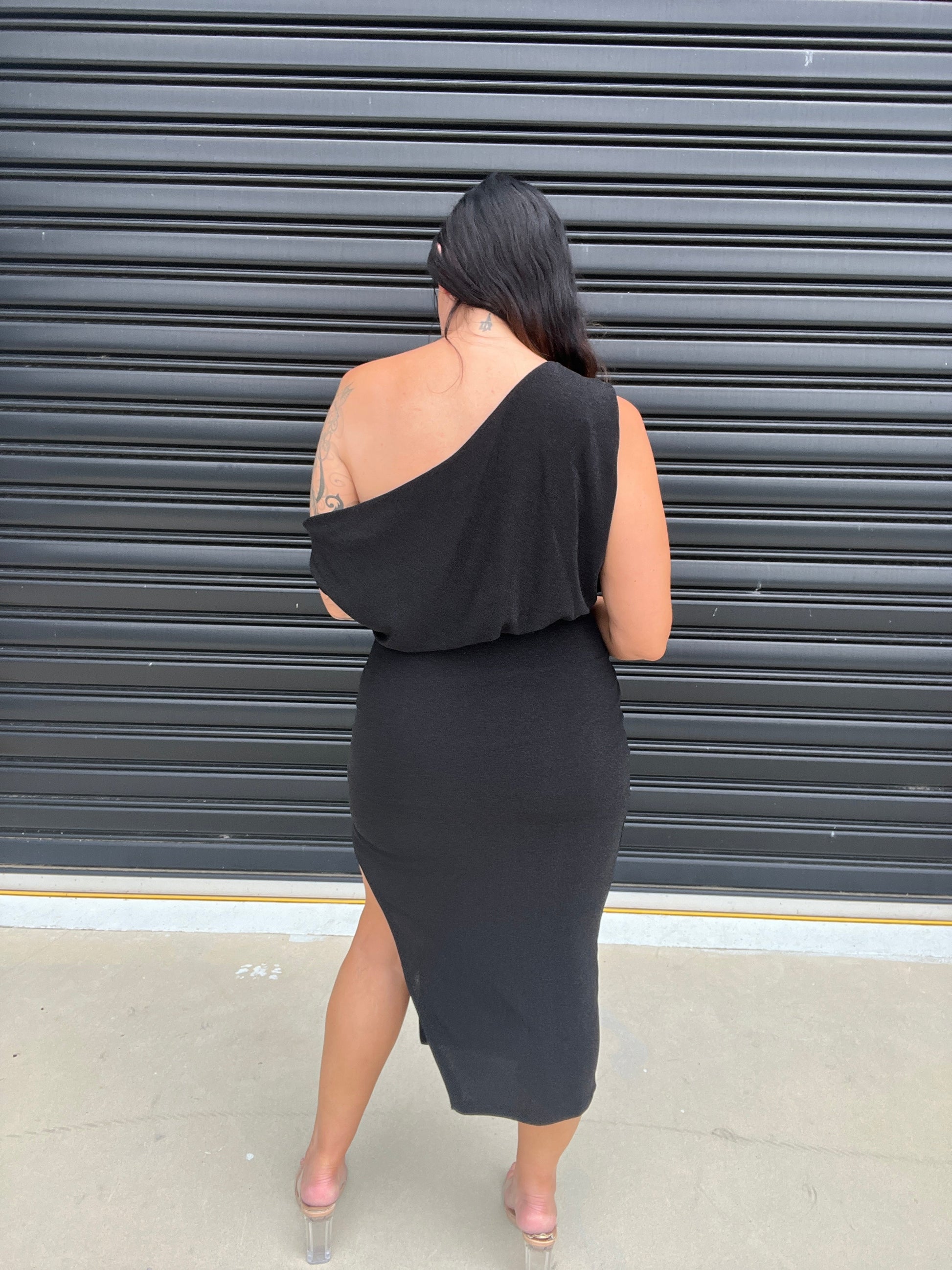 Klänning dam Enaxlad Figurnära Asymmetrisk med knut. Denna eleganta enaxlade klänning från Eva Jansson har en smickrande figurnära passform och en unik asymmetrisk fåll med en vacker knutdetalj i midjan. Perfekt för en sofistikerad look.