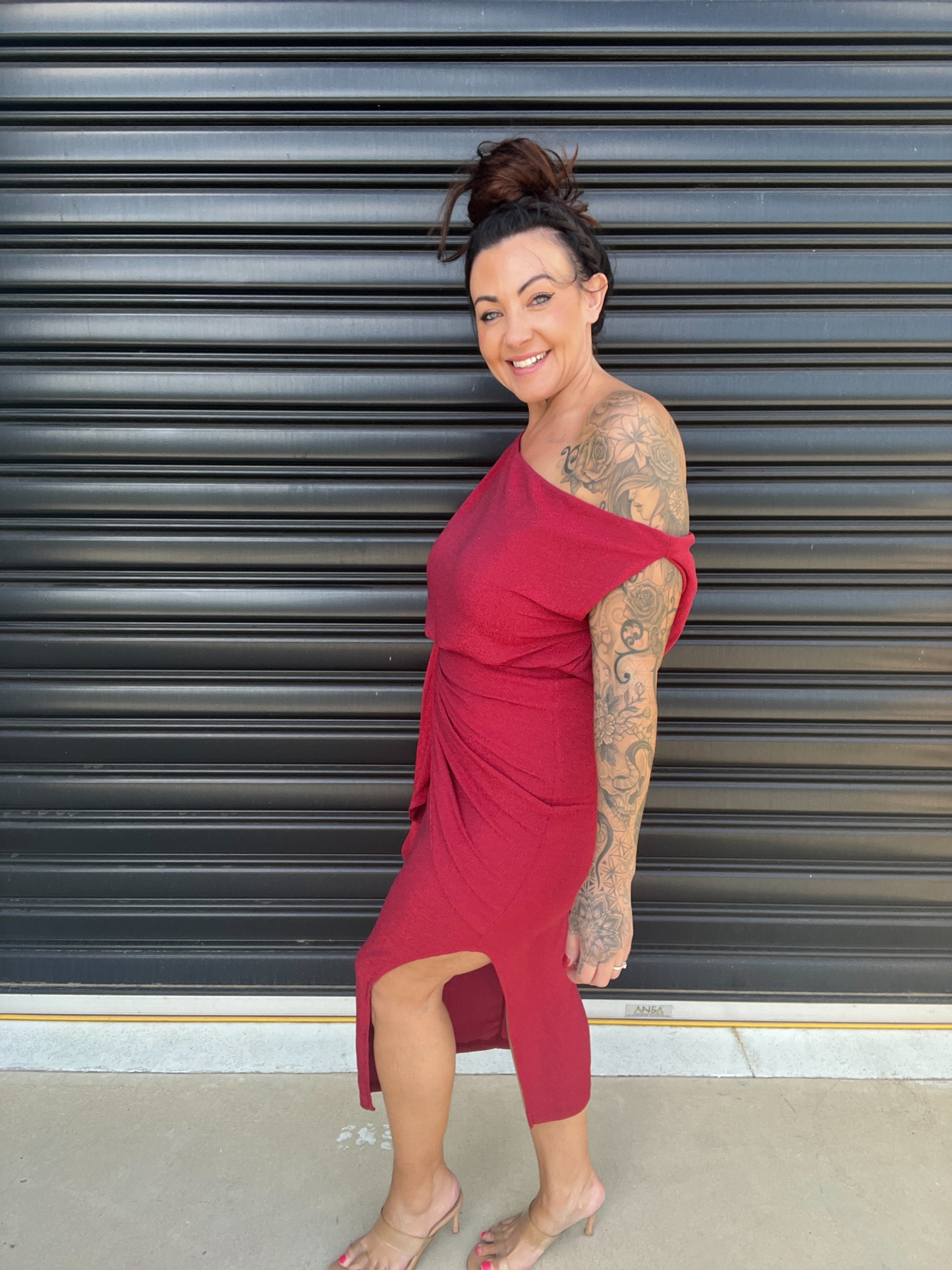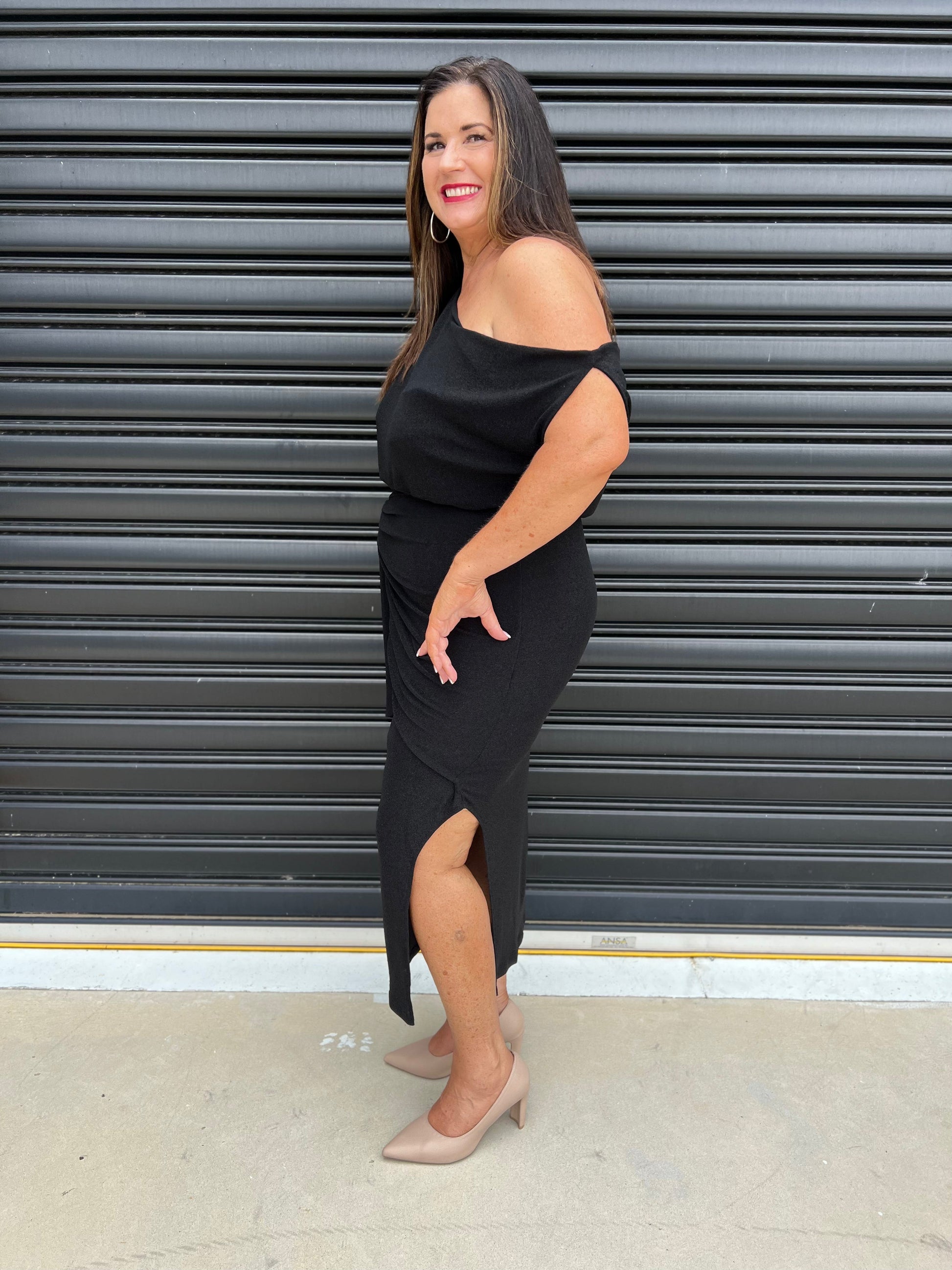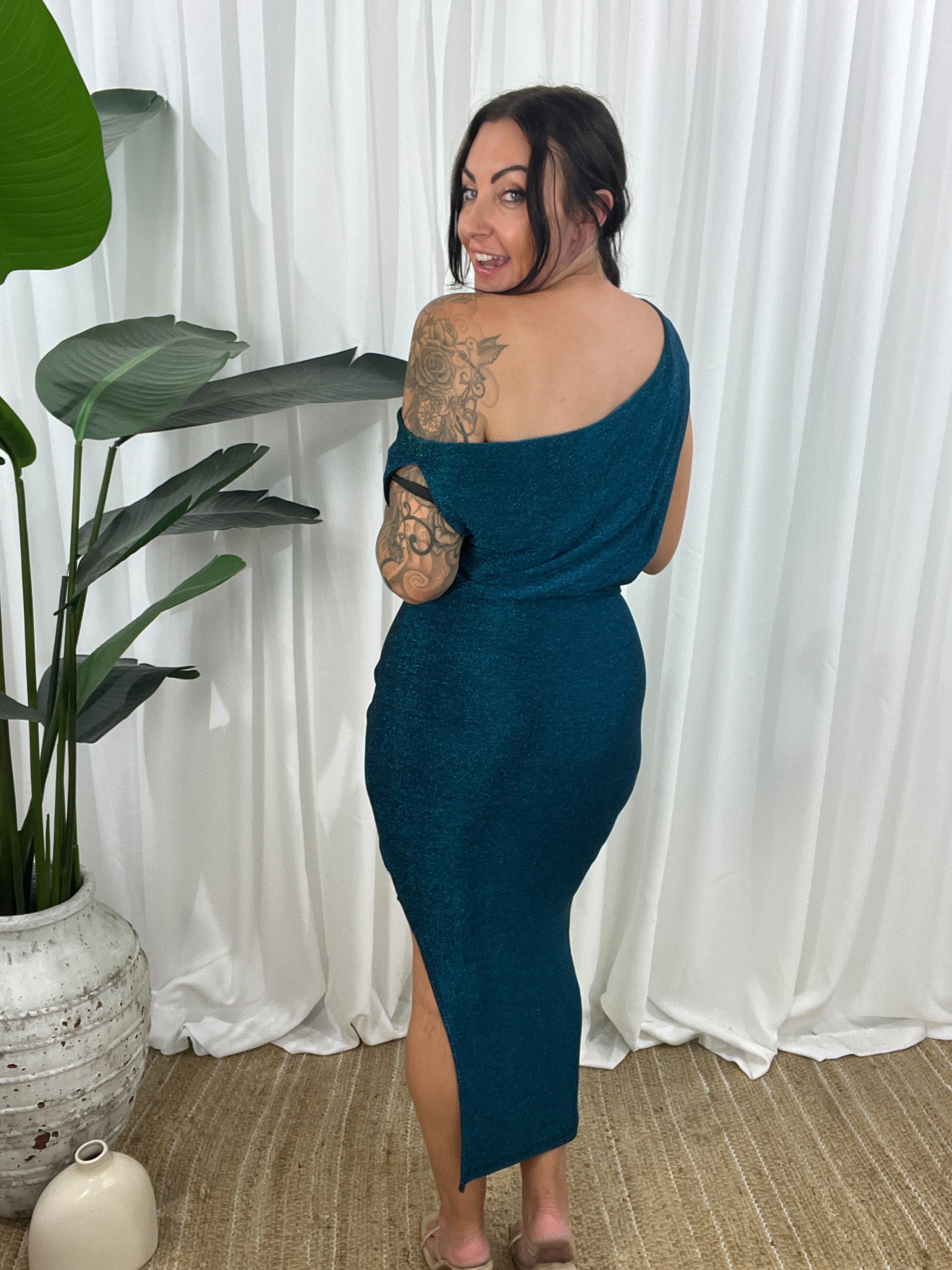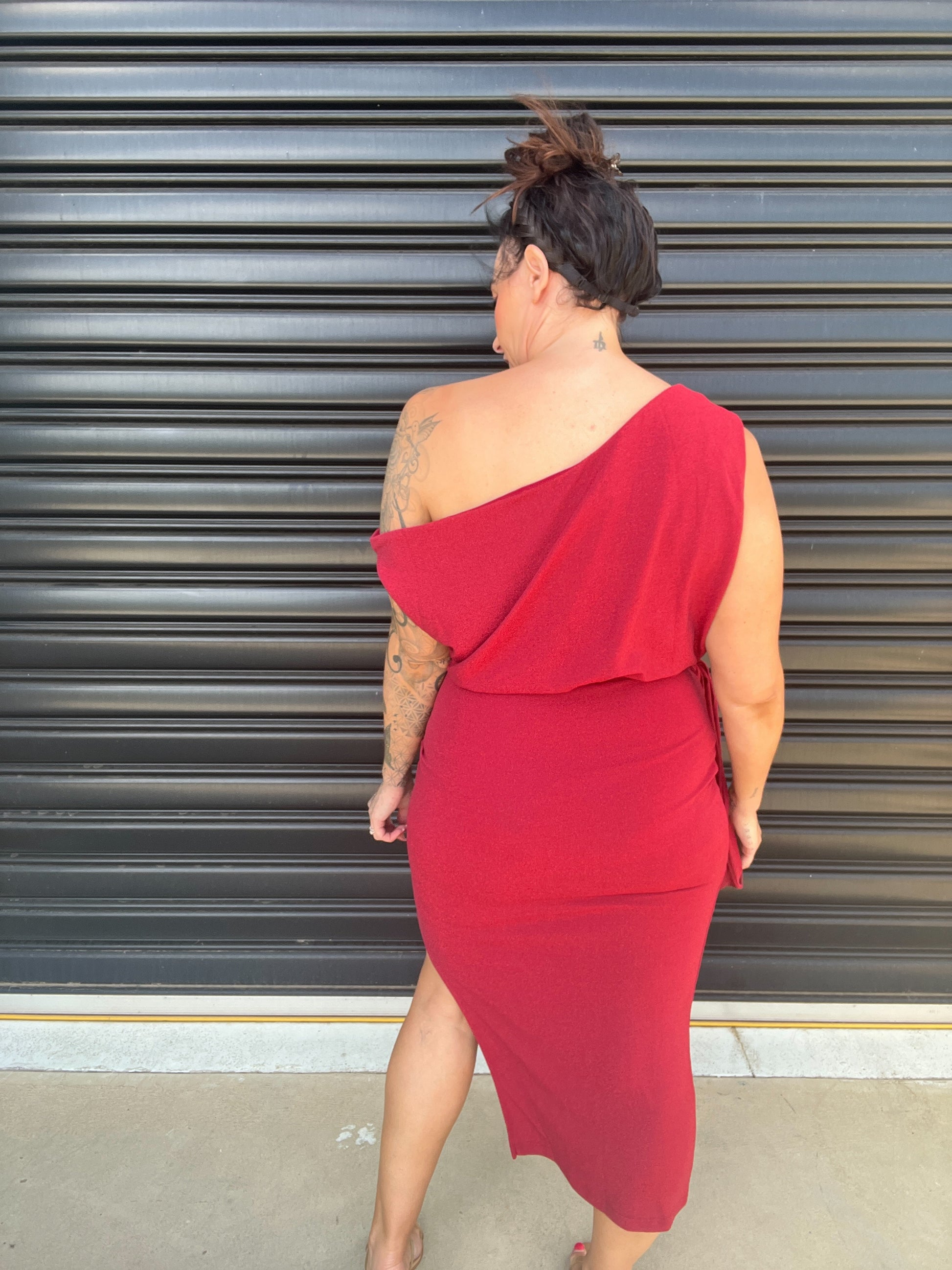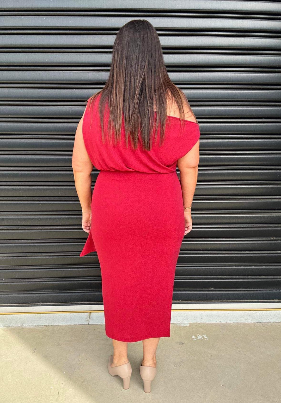 Klänning dam Enaxlad Figurnära Asymmetrisk med knut. Denna eleganta enaxlade klänning från Eva Jansson har en smickrande figurnära passform och en unik asymmetrisk fåll med en vacker knutdetalj i midjan. Perfekt för en sofistikerad look.