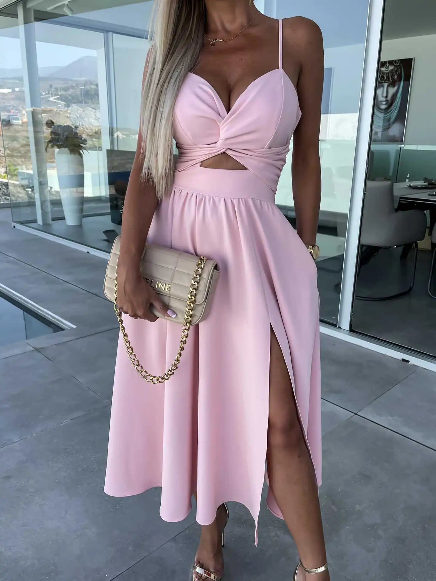 Kvinnors klänning – Djup V-ringning med tvist framtill – A-linjeformad med slits i sidan