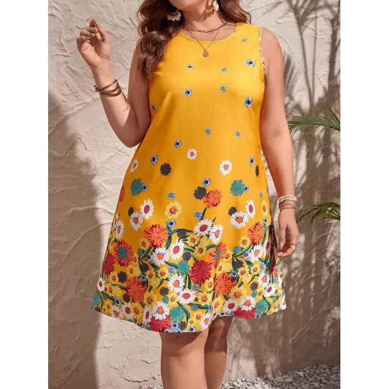 Omfamna soliga dagar med stil i vår blommiga ärmlösa sommarklänning för kvinnor. Lätt, luftig och elegant, dess lösa passform håller dig bekväm medan det livfulla blommiga trycket ger en fräsch, elegant touch – perfekt för picknick, strandresor eller avslappnade tillhåll.