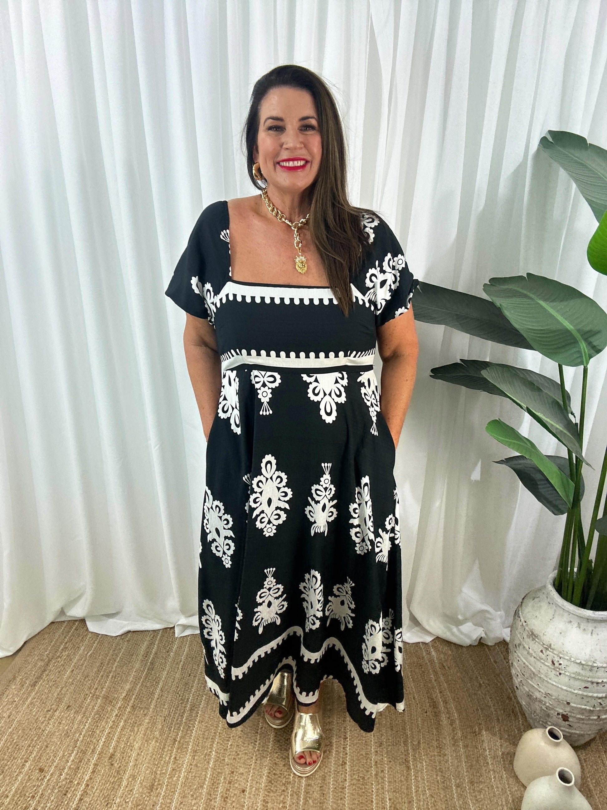Komplettera med sandaler och en stråhatt för en avslappnad sommarlook, eller klä upp den med klackar och smycken för en mer formell tillställning.