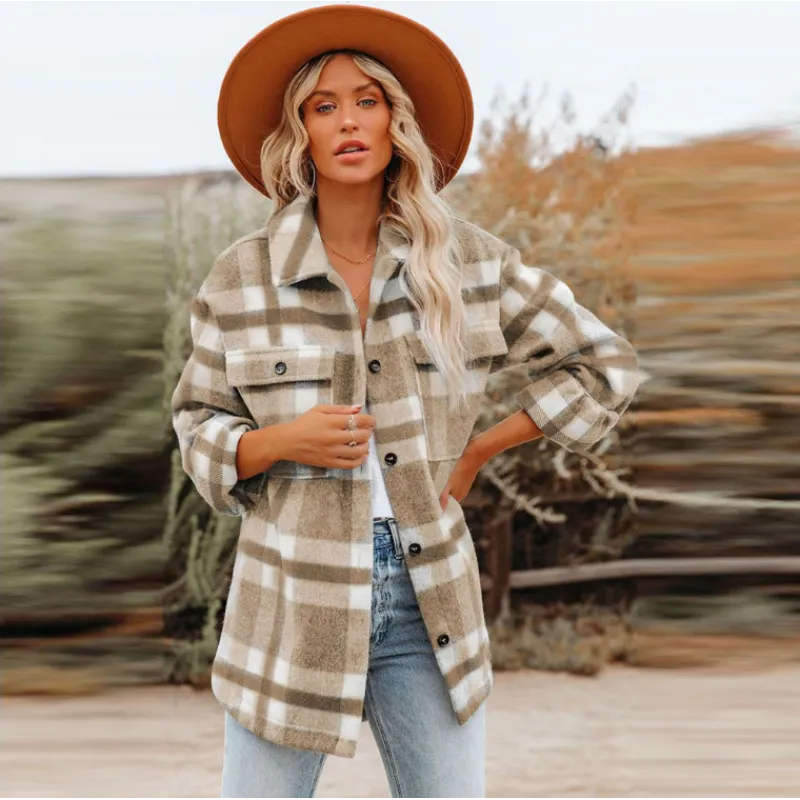 Dam Shacket - Oversized Passform - Rutigt Mönster - Knäppning & Bröstfickor