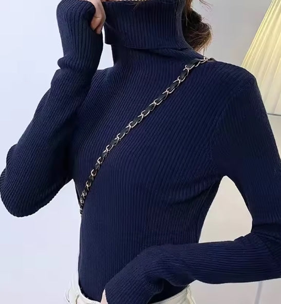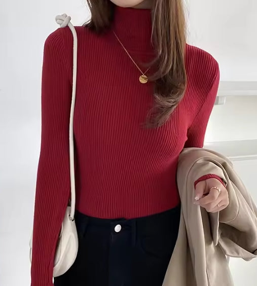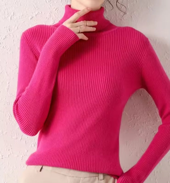 Women’s Turtleneck Sweater - Slim Fit - Ribbed Knit - Long Sleeve Stretchy Pullover